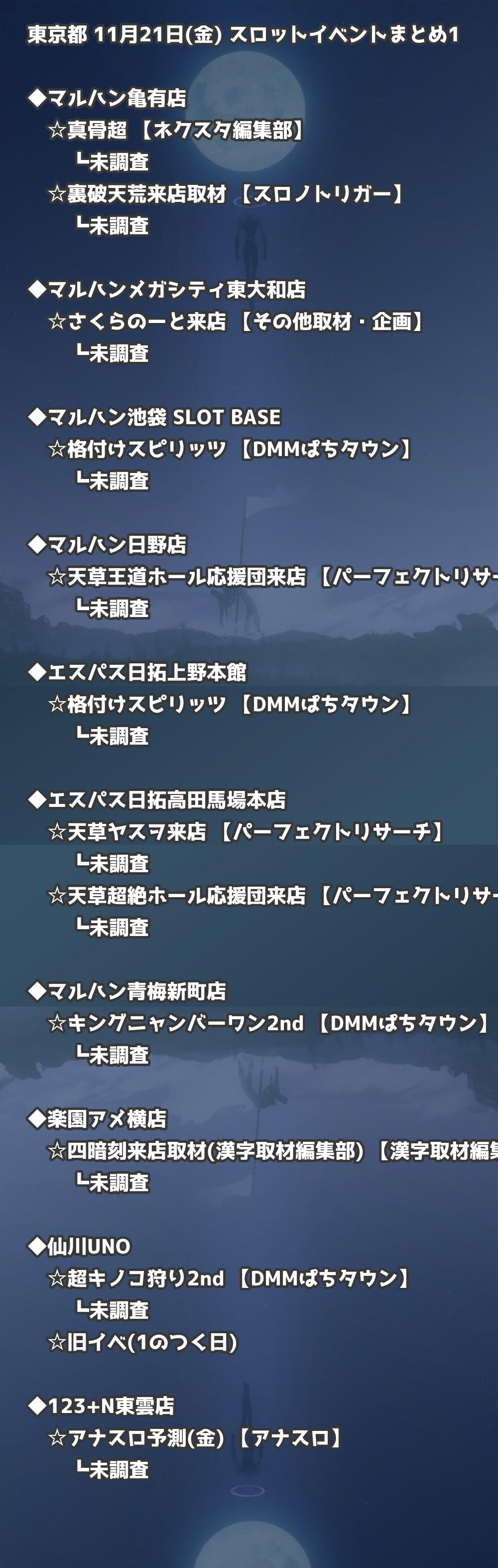 📊 東京都 11月21日(金) 勝てるパチンコ・スロット取材店舗一覧|おすすめ順