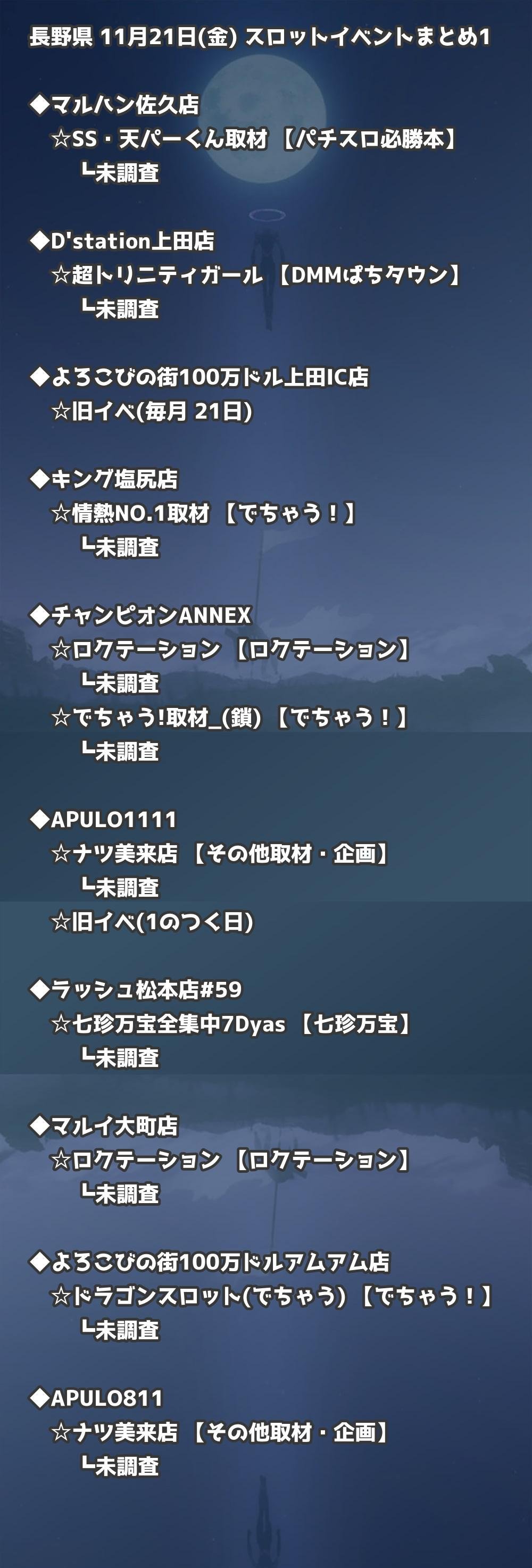 📊 長野県 11月21日(金) 勝てるパチンコ・スロット取材店舗一覧|おすすめ順