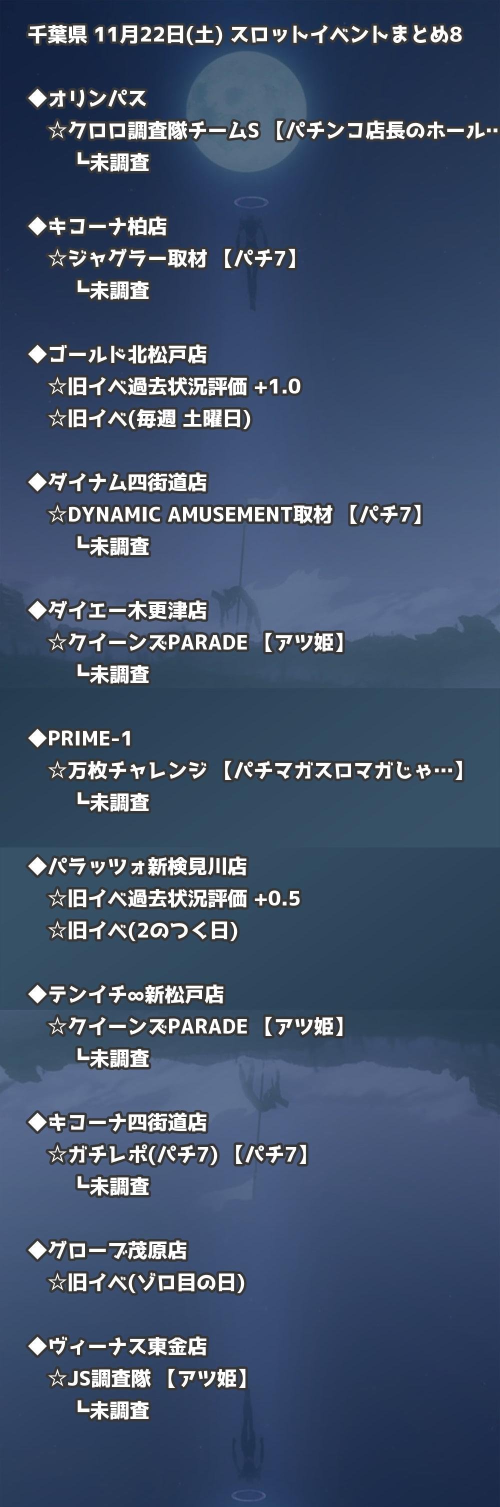 【千葉県】11月22日(土) パチンコホールイベント取材まとめ記事です。