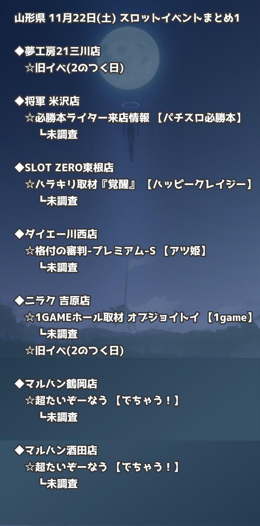 📊 山形県 11月22日(土) 勝てるパチンコ・スロット取材店舗一覧|おすすめ順