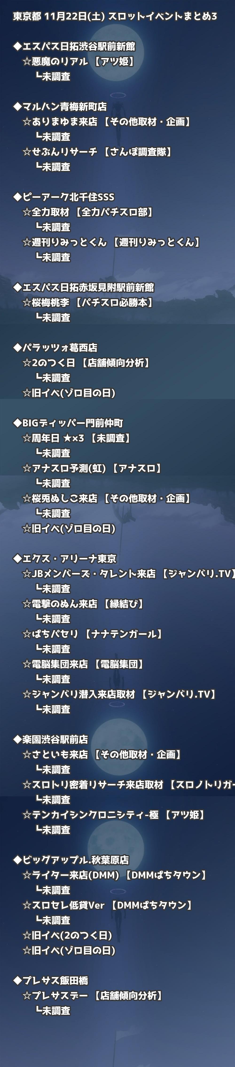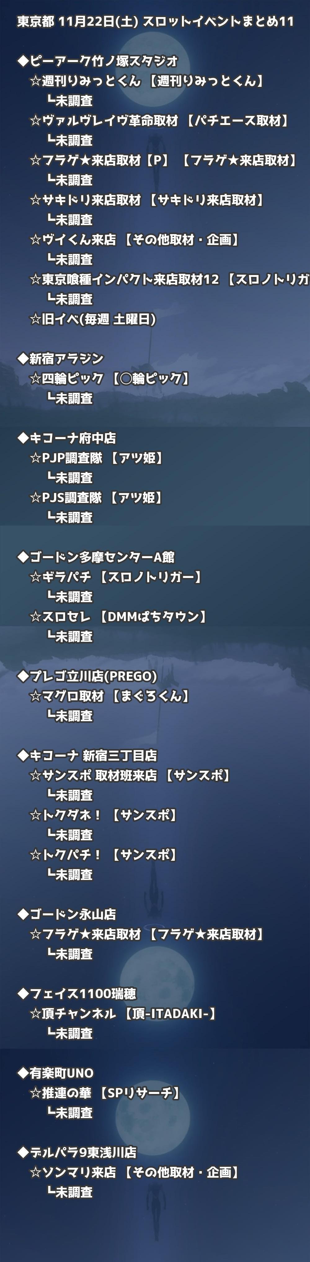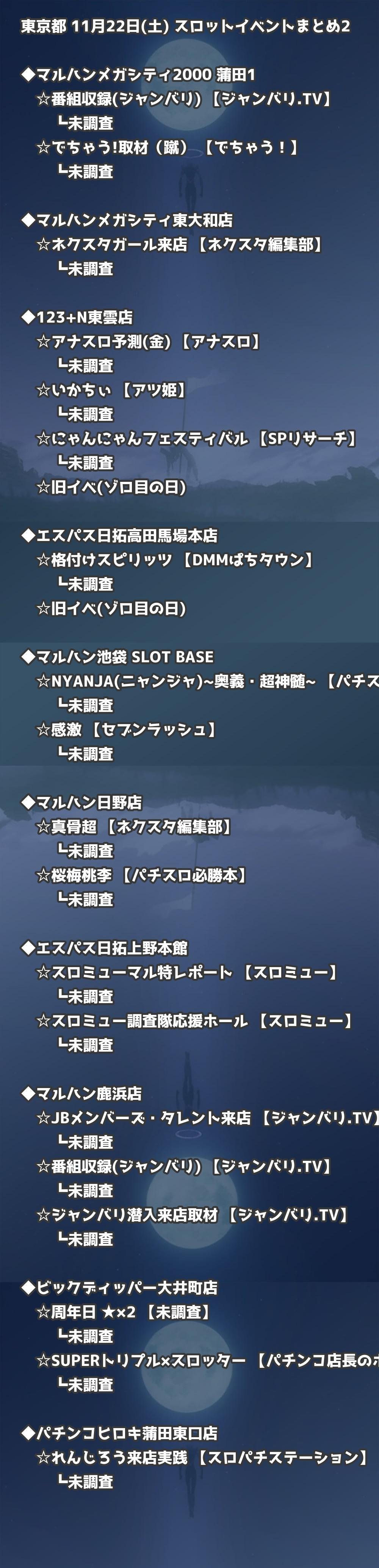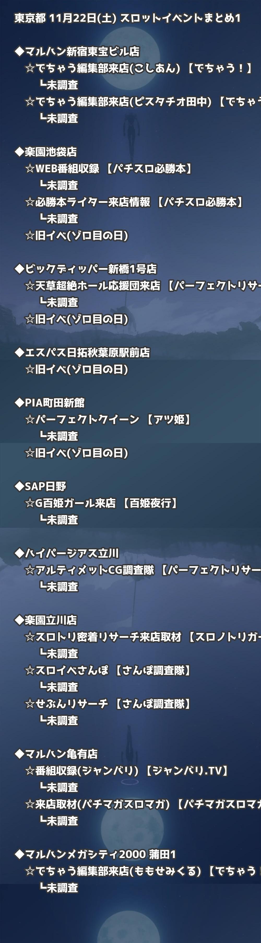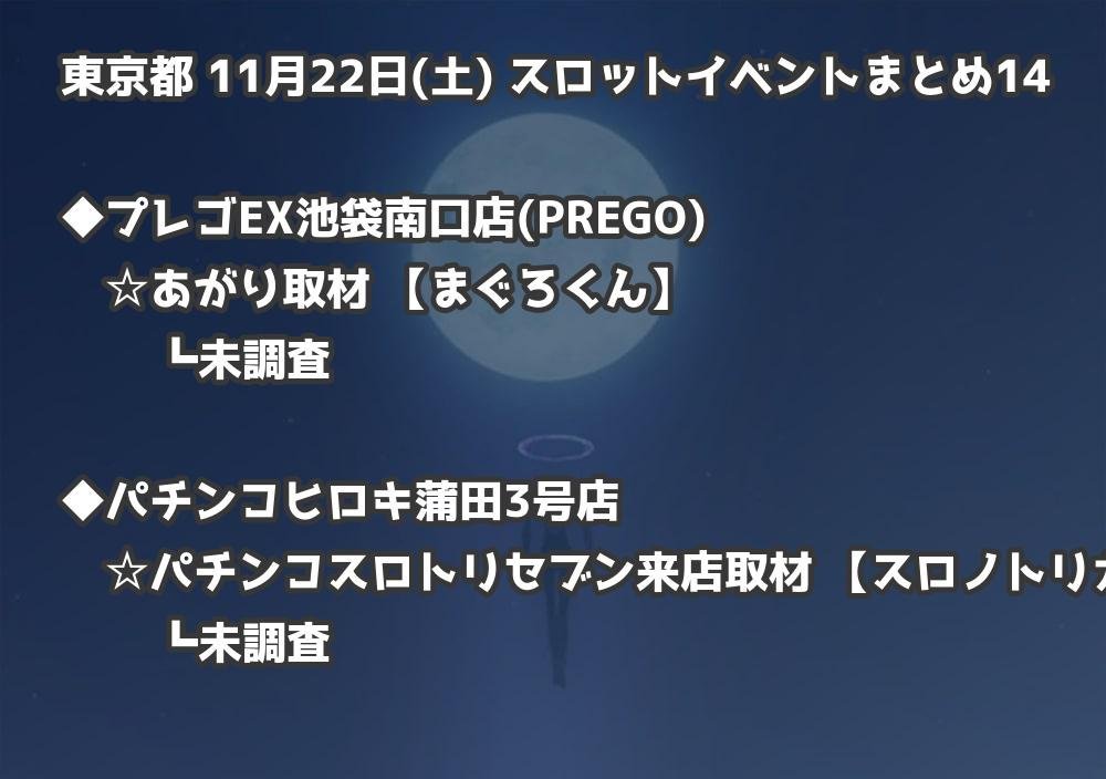 【東京都】11月22日(土) パチンコホールイベント取材まとめ記事です。