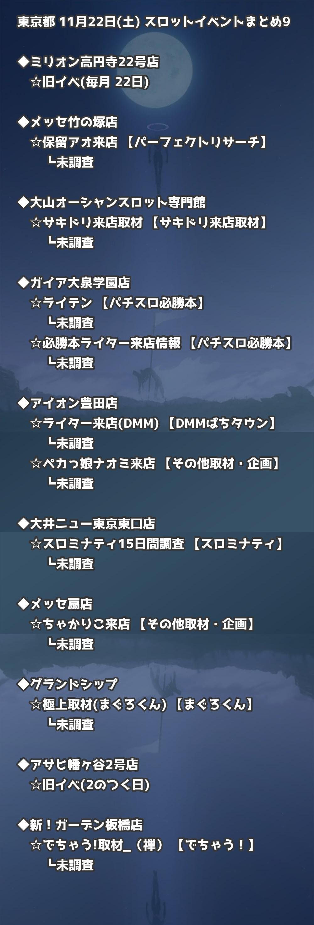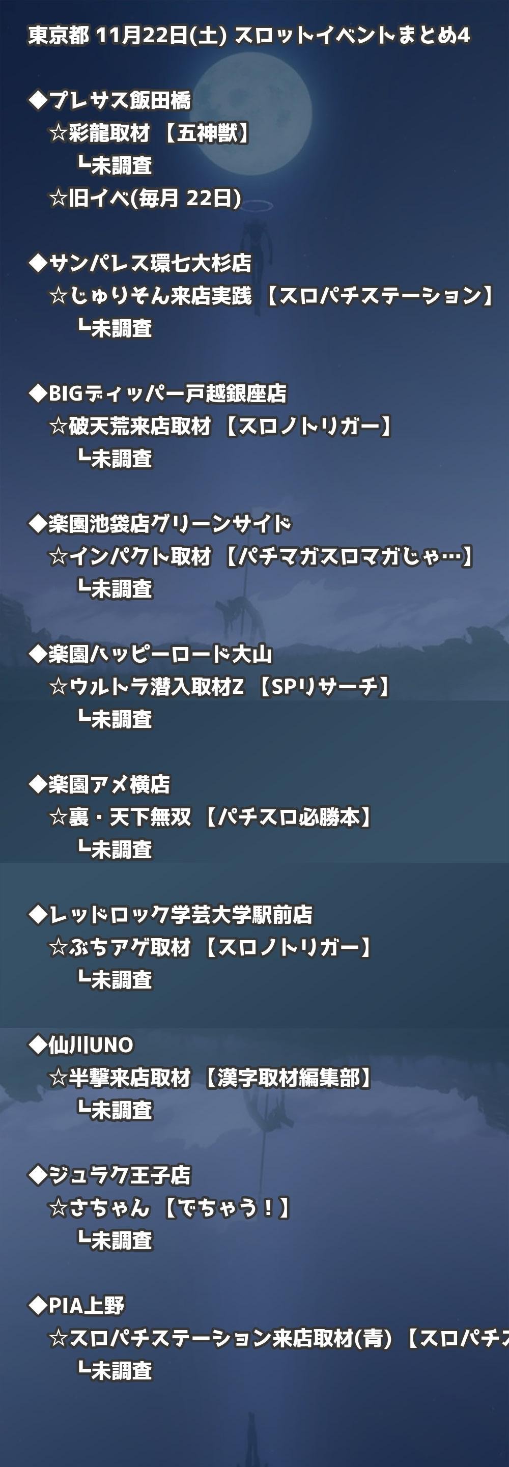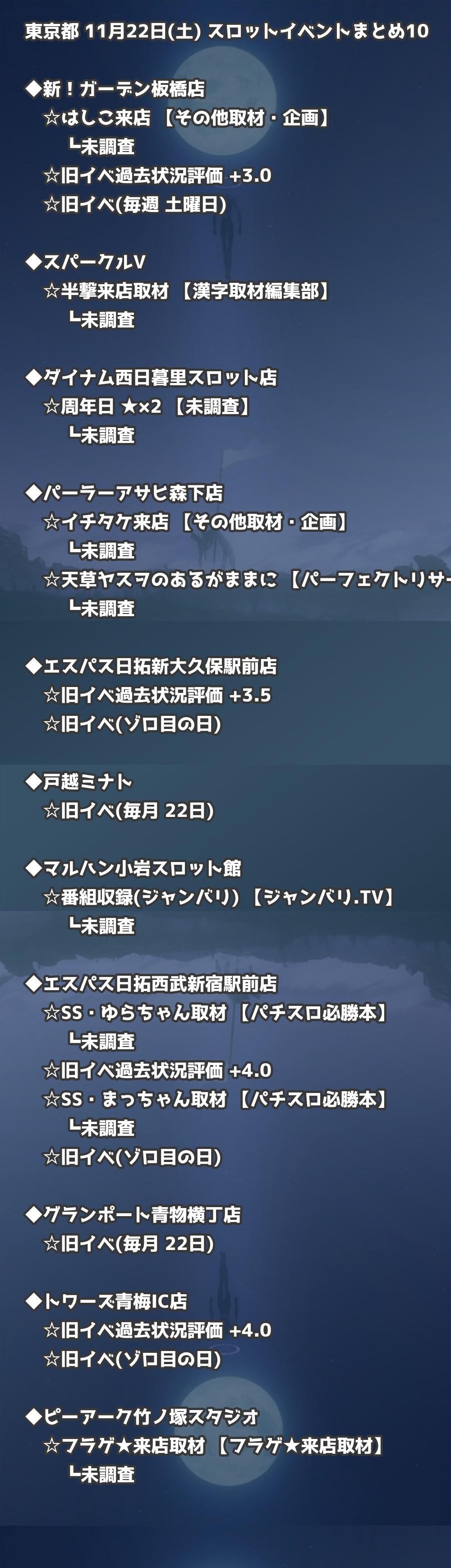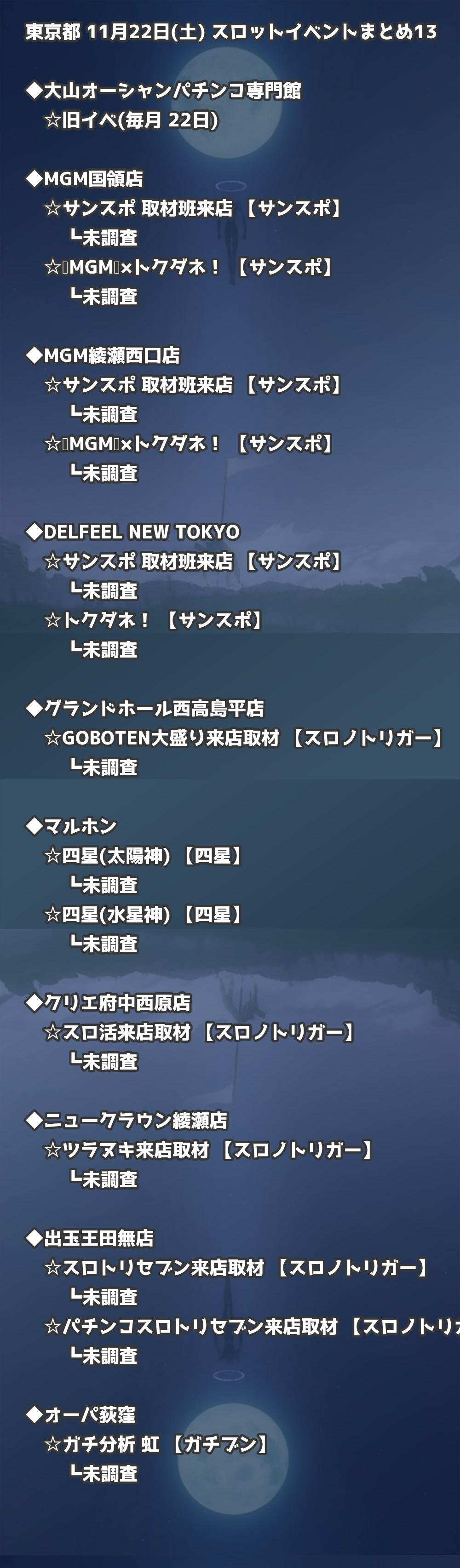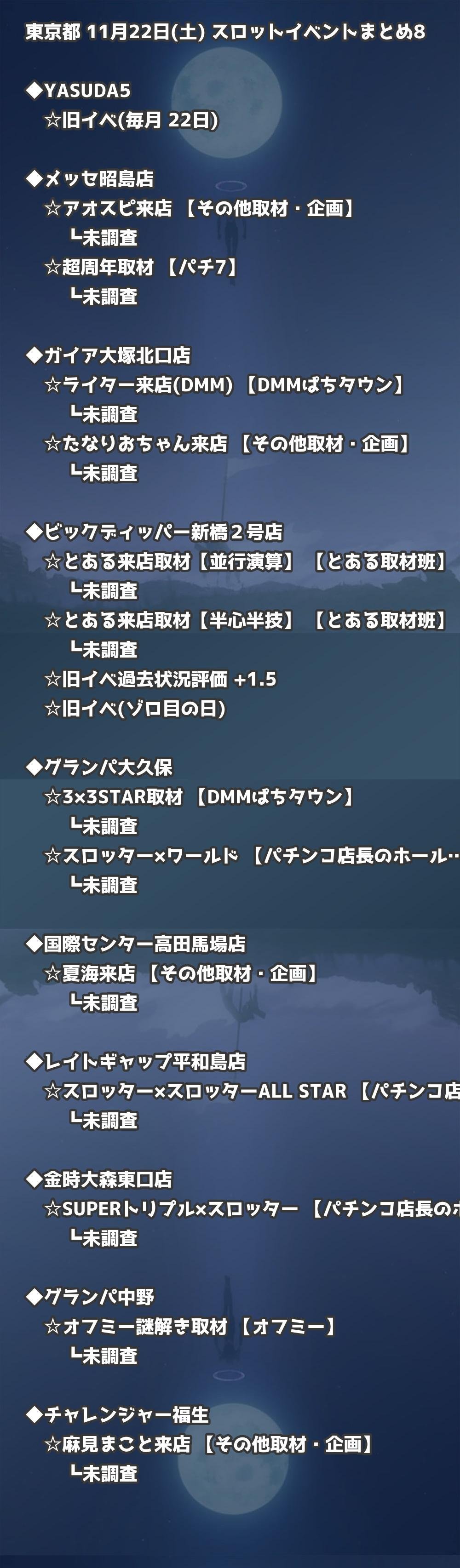 【東京都】11月22日(土) パチンコホールイベント取材まとめ記事です。