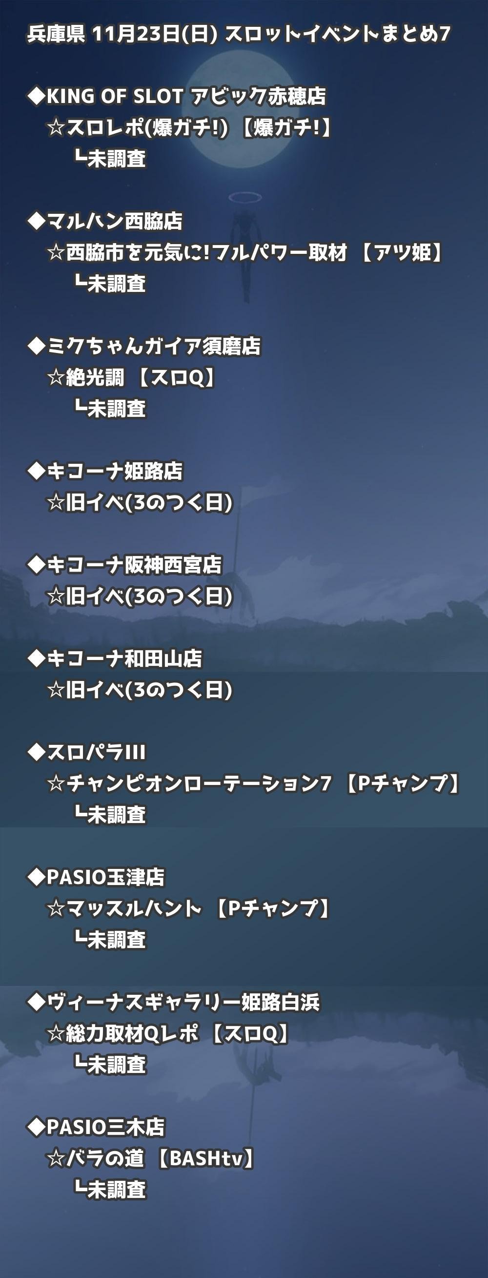 ※店舗結果掲載済 【兵庫】11月23日(日) 今日のスロット・パチンコ激熱イベント取材まとめ