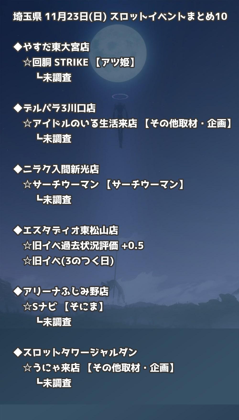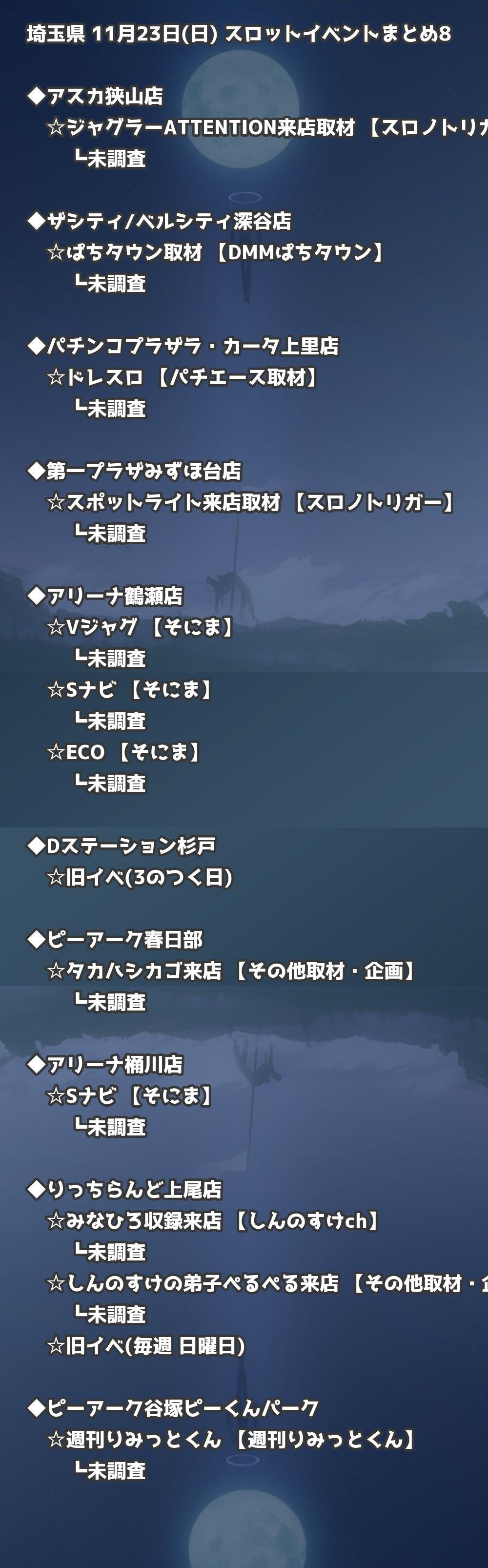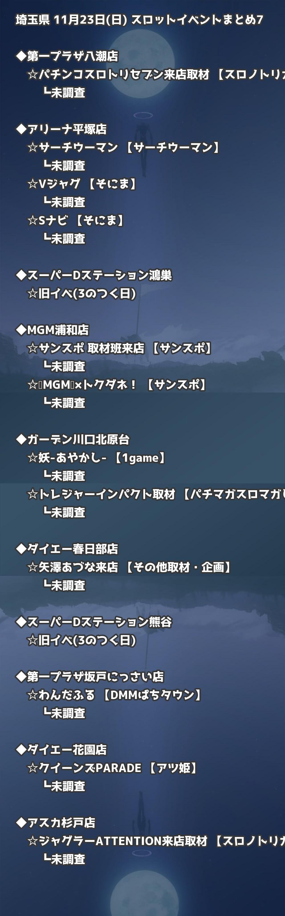 ※店舗結果掲載済 【埼玉】11月23日(日) 今日のスロット・パチンコ激熱イベント取材まとめ