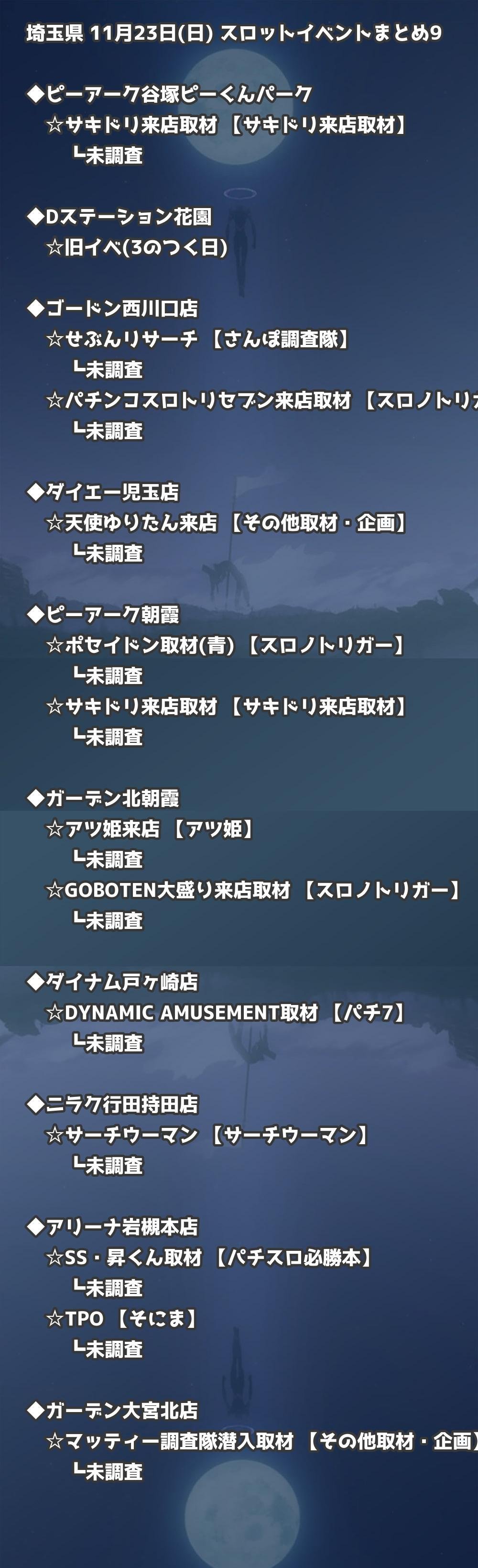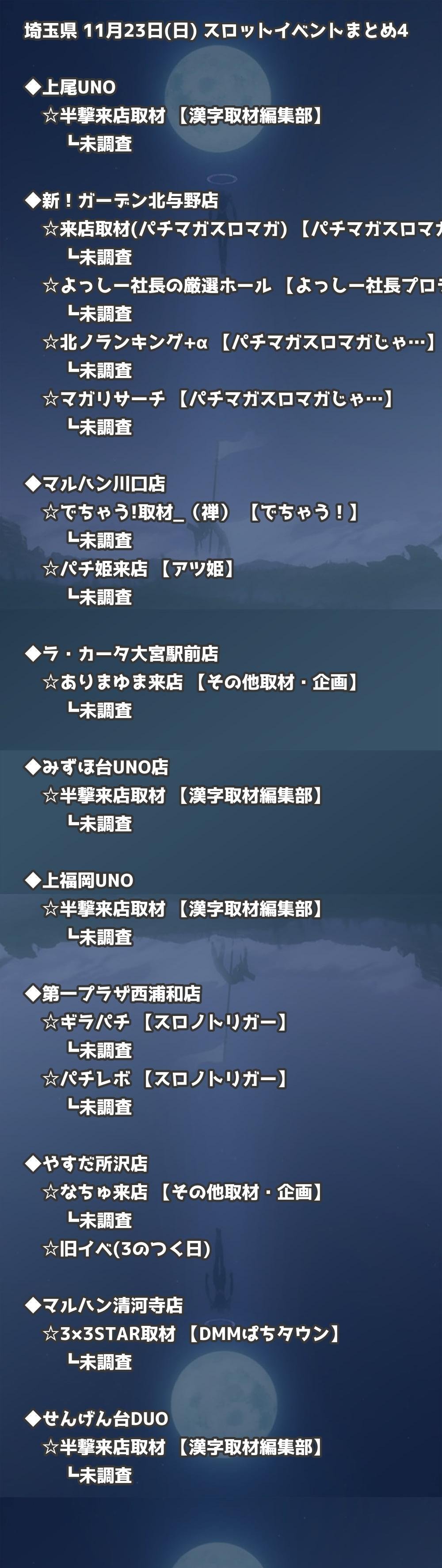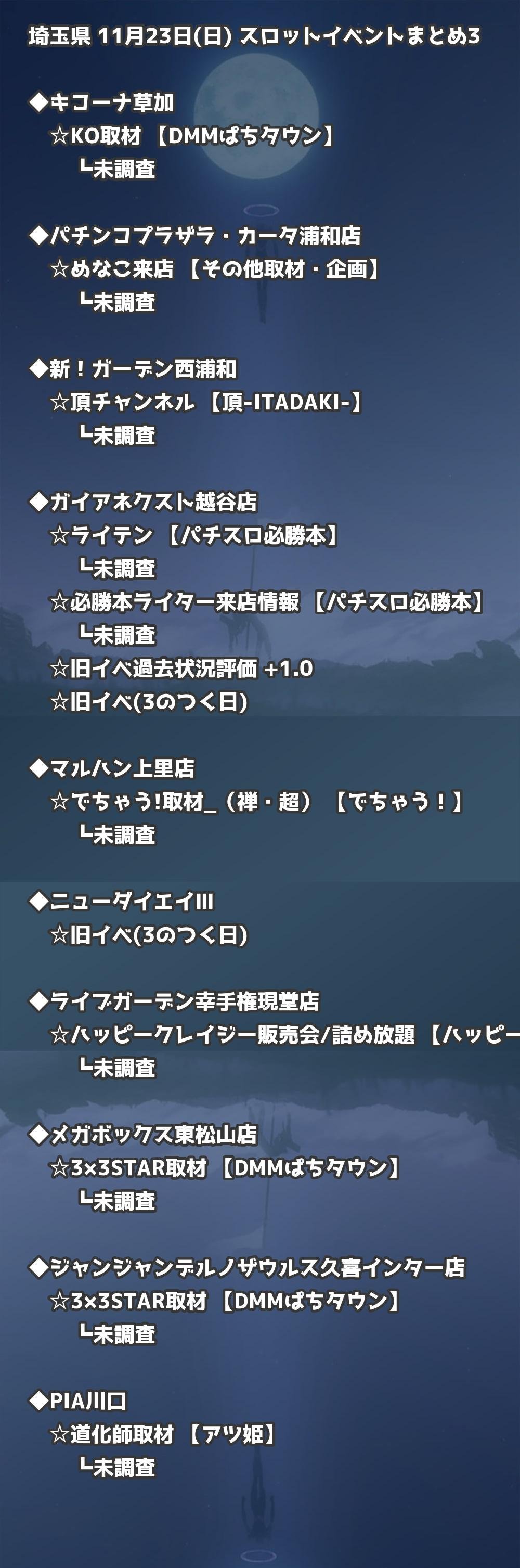 【埼玉県】11月23日(日) パチンコホールイベント取材まとめ記事です。