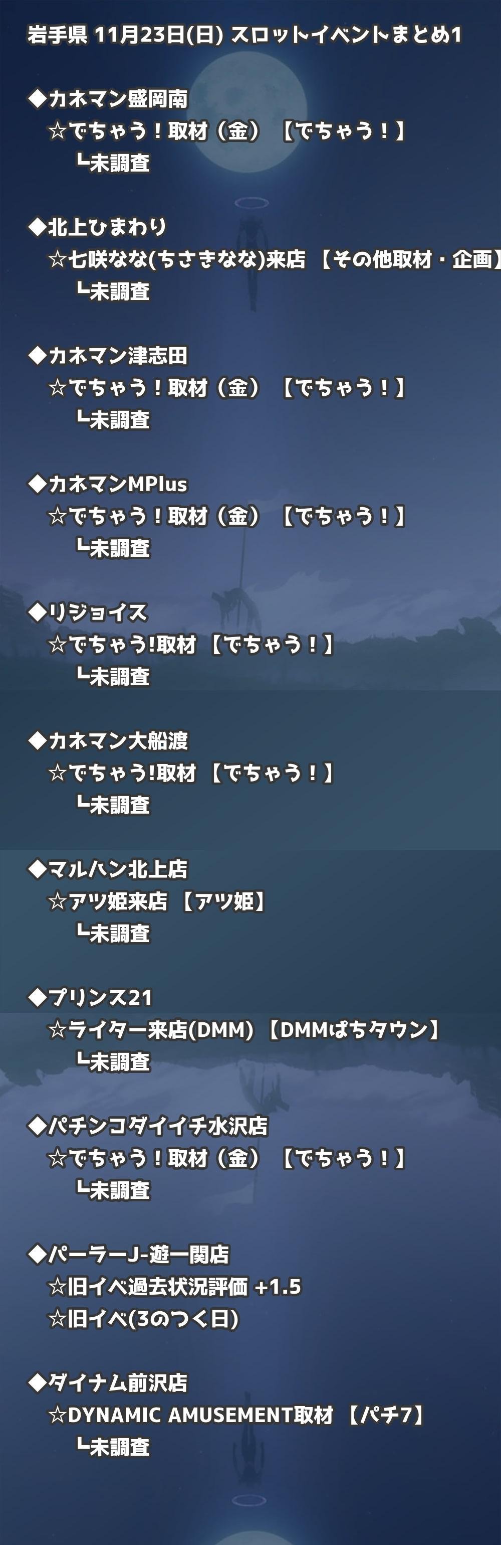 【岩手県】11月23日(日) パチンコホールイベント取材まとめ記事です。