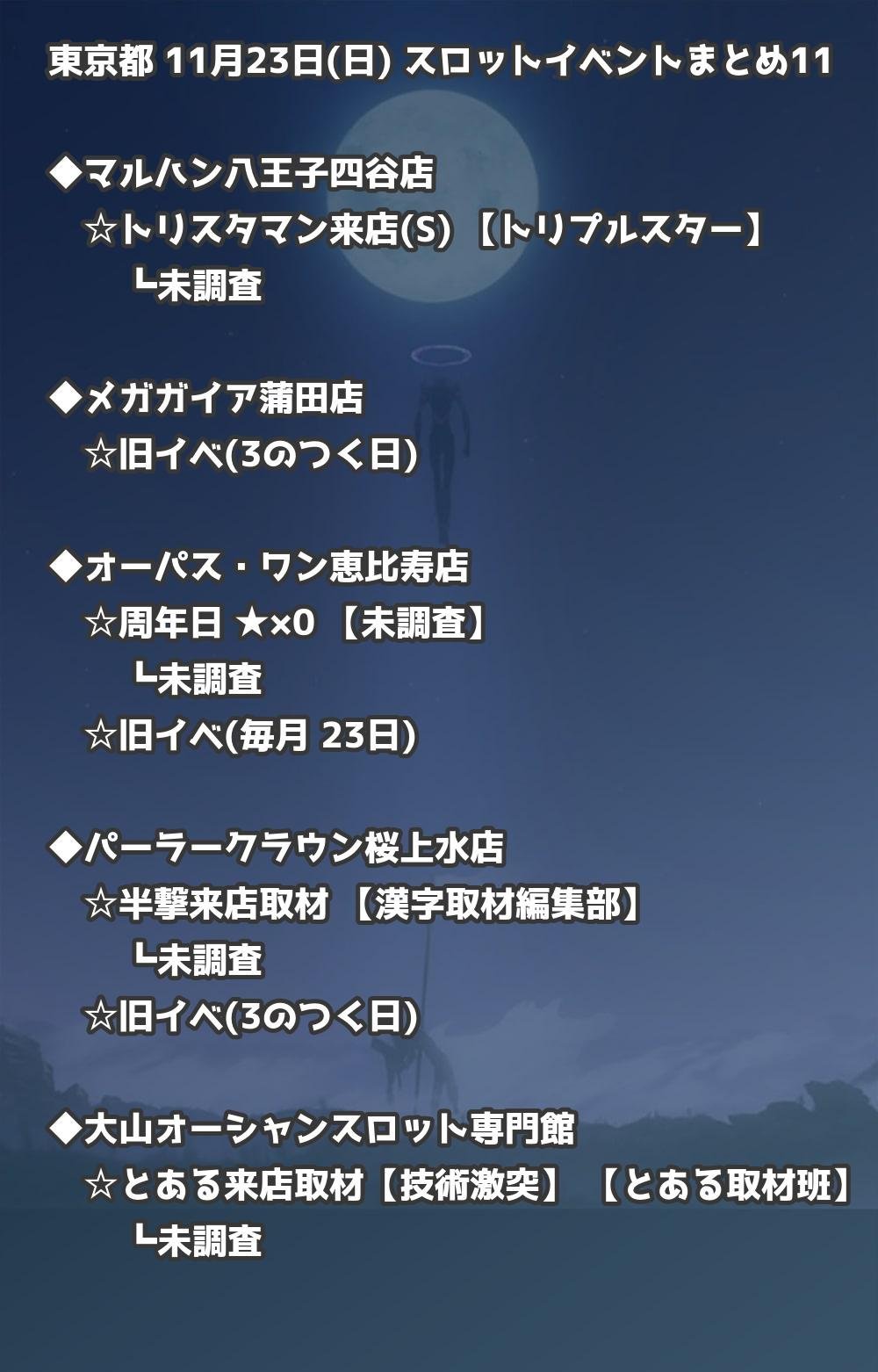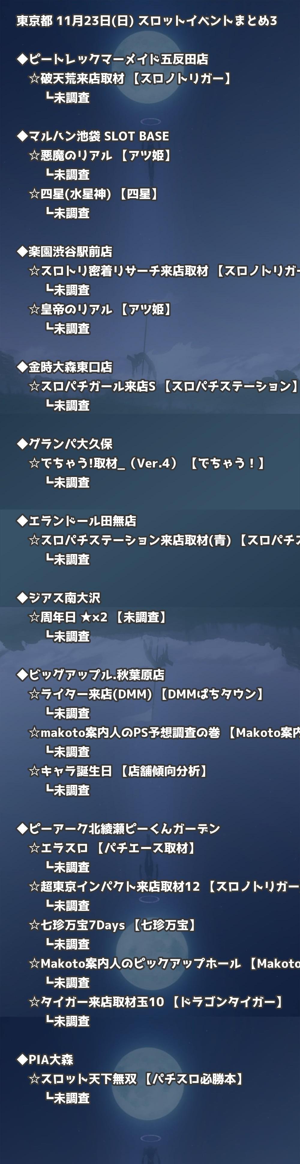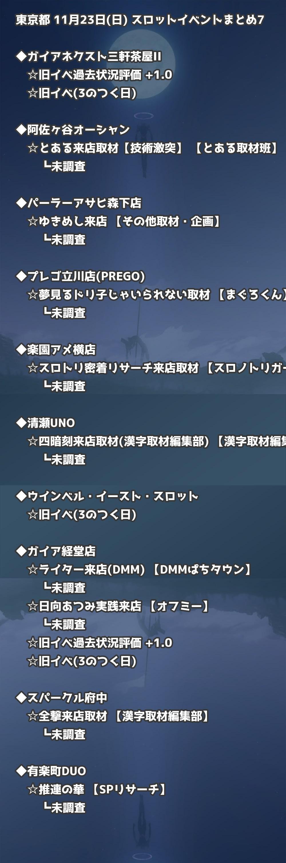 【東京都】11月23日(日) パチンコホールイベント取材まとめ記事です。