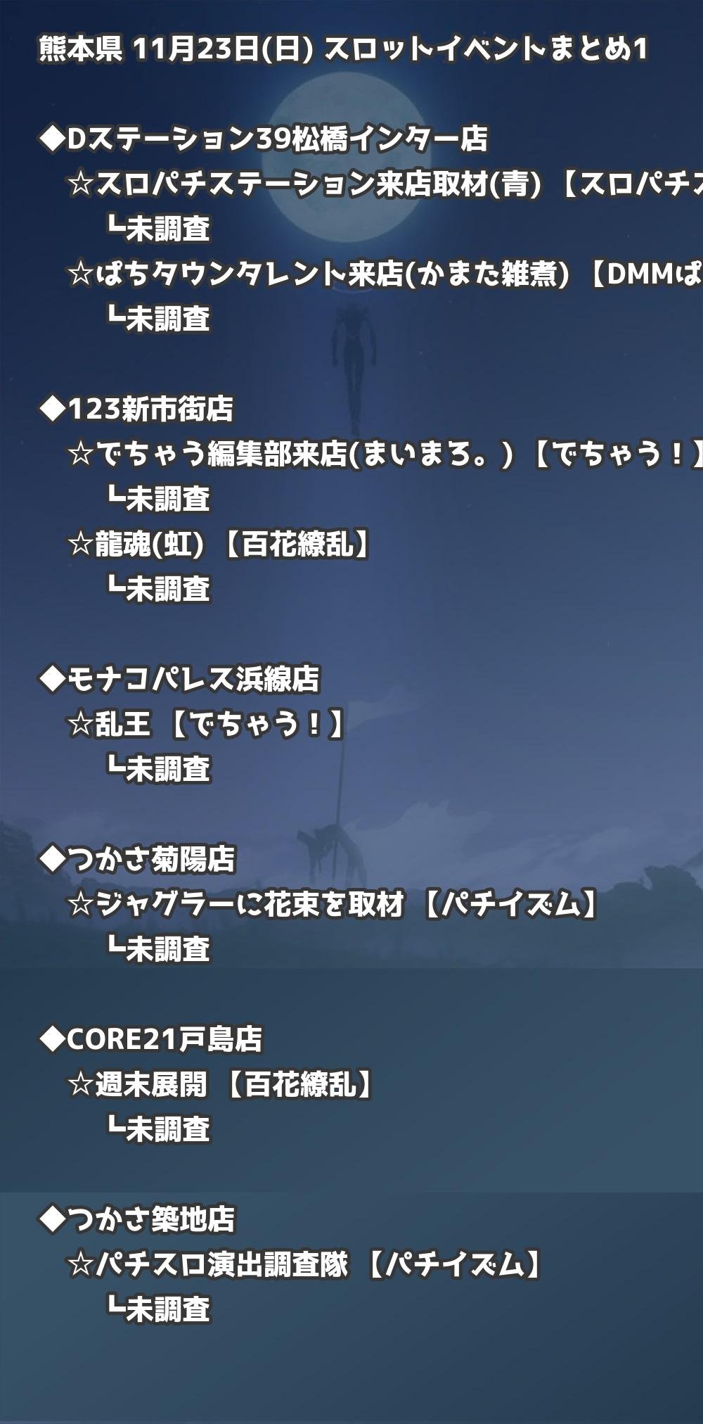 【熊本県】11月23日(日) パチンコホールイベント取材まとめ記事です。