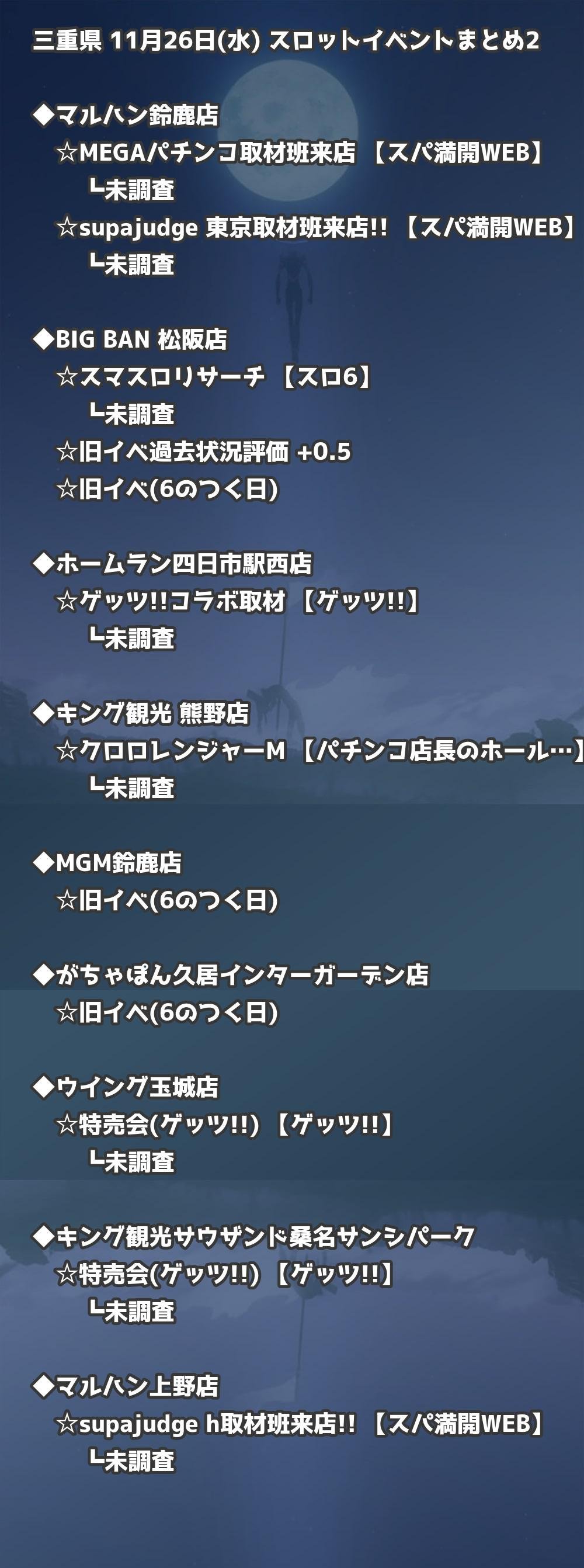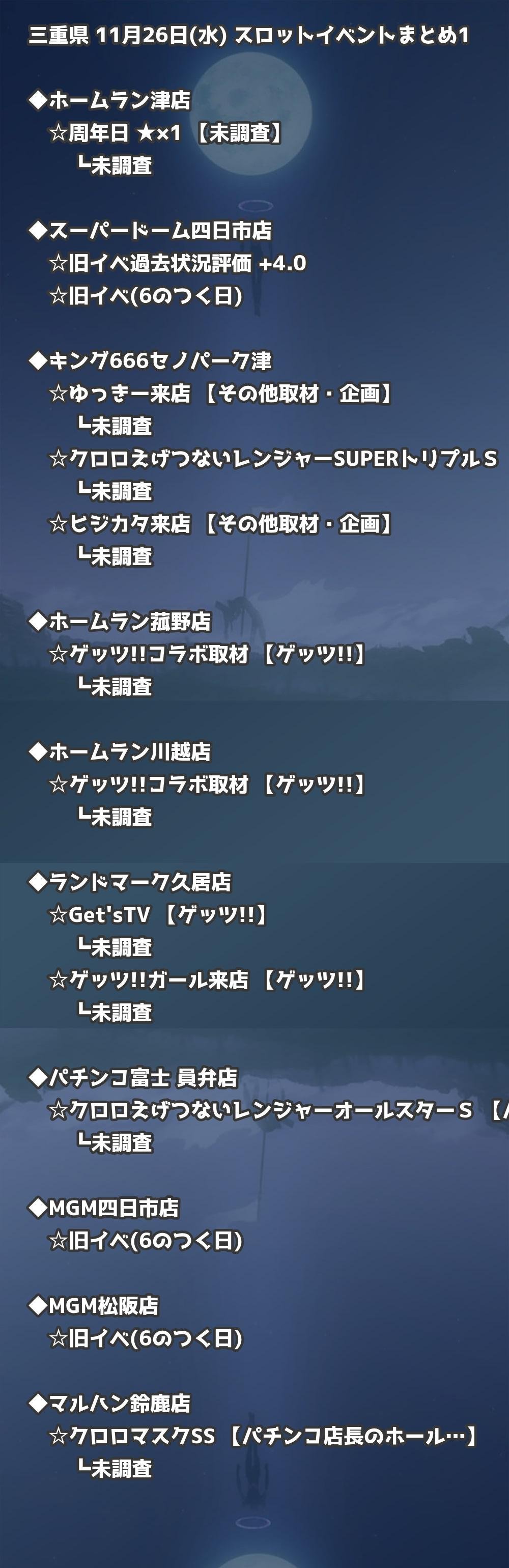 【三重県】11月26日(水) パチンコホールイベント取材まとめ記事です。