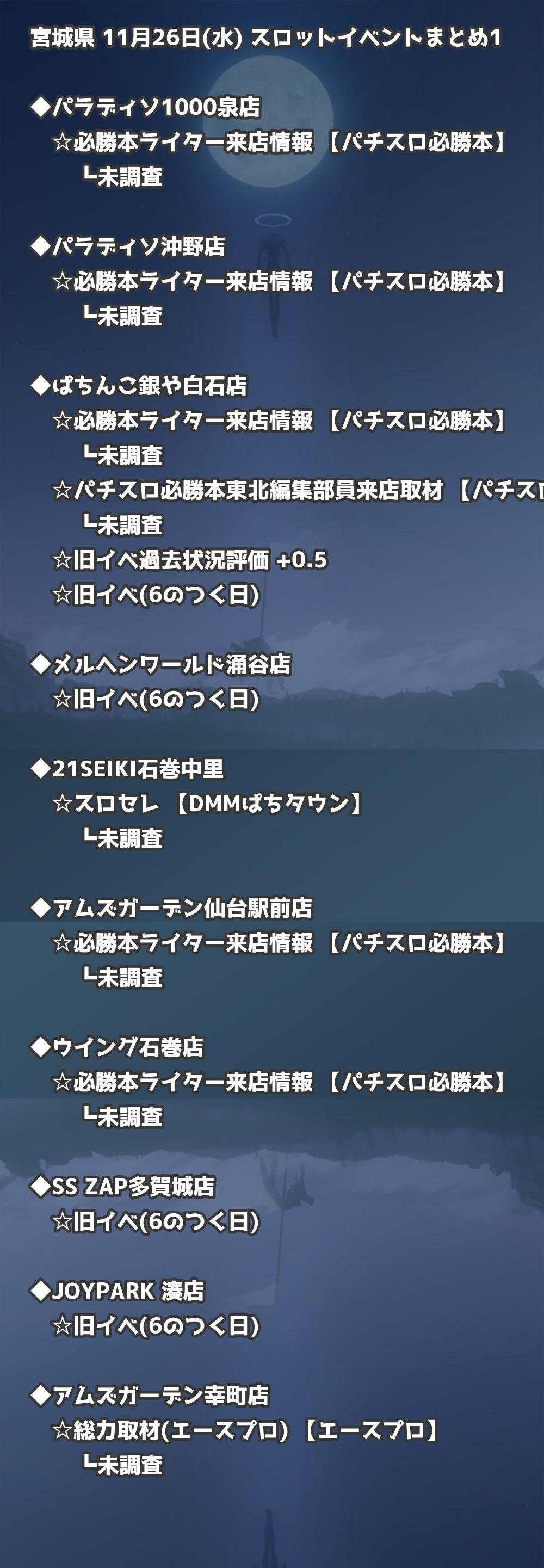 📊 宮城県 11月26日(水) 勝てるパチンコ・スロット取材店舗一覧|おすすめ順