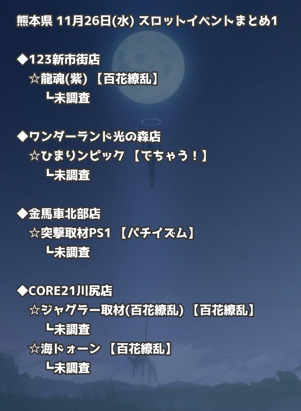 【熊本県】11月26日(水) パチンコホールイベント取材まとめ記事です。