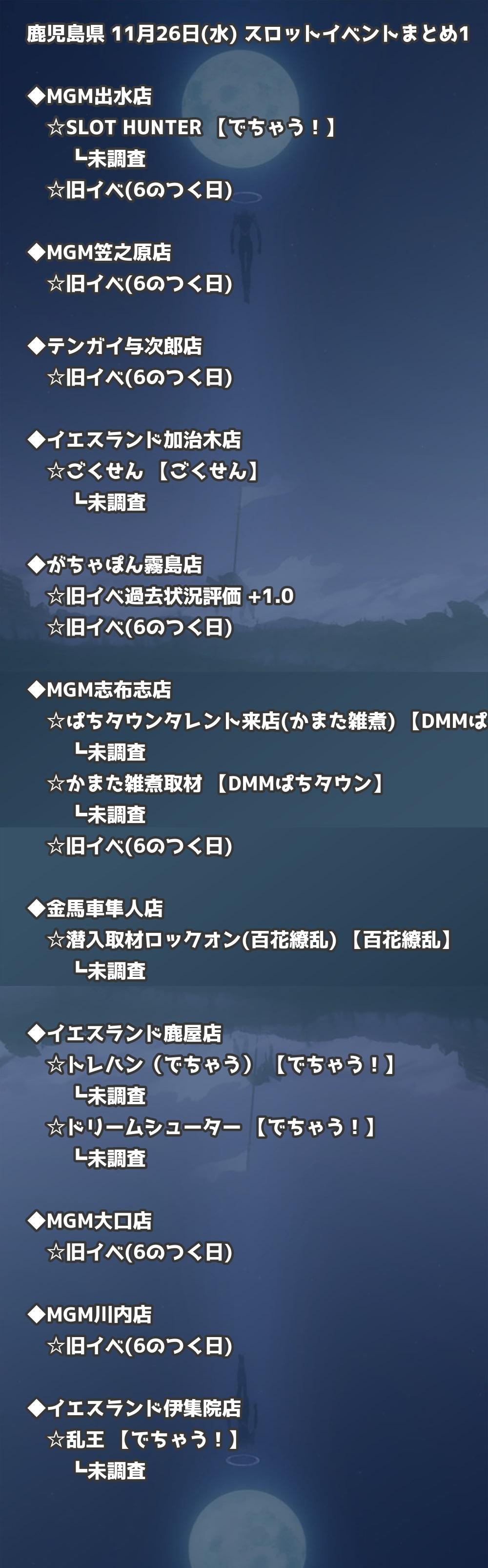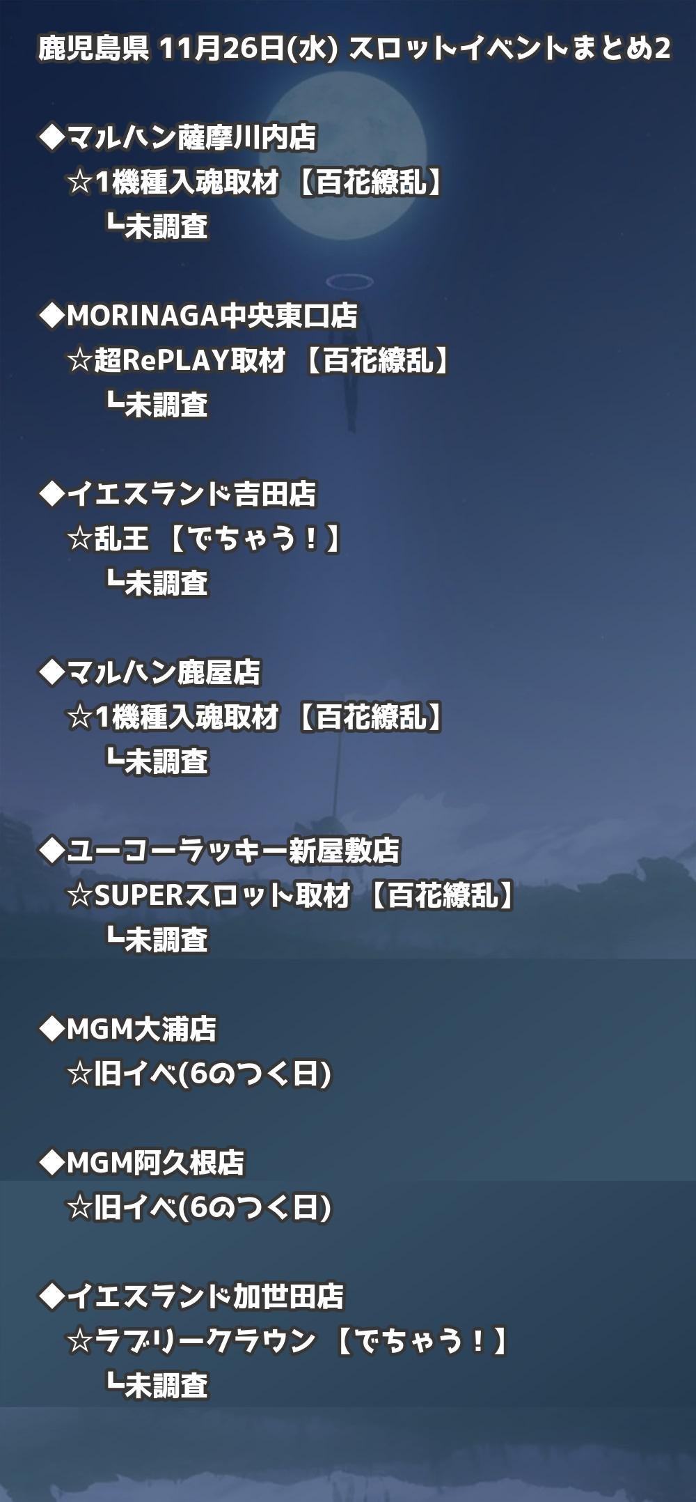 【鹿児島県】11月26日(水) パチンコホールイベント取材まとめ記事です。