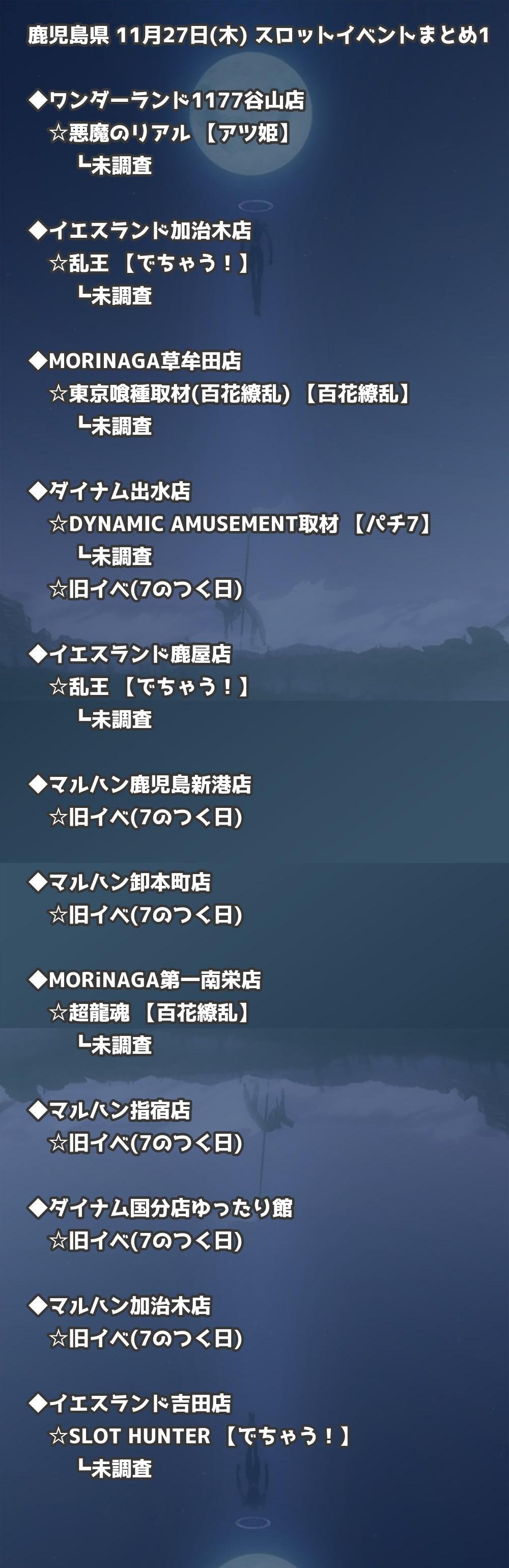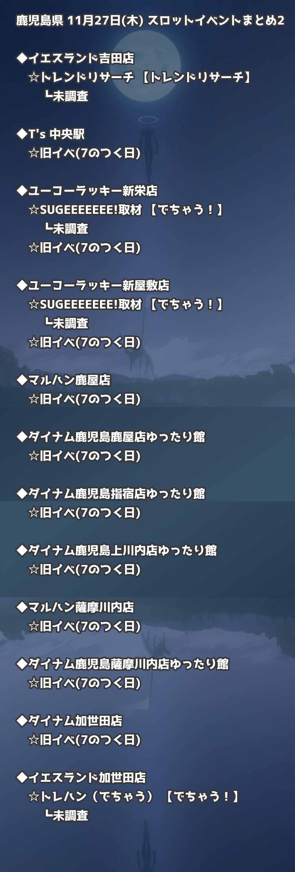 📊 鹿児島県 11月27日(木) 勝てるパチンコ・スロット取材店舗一覧|おすすめ順