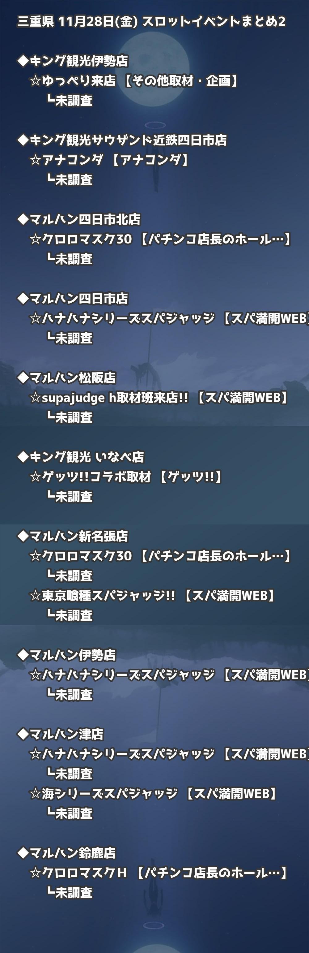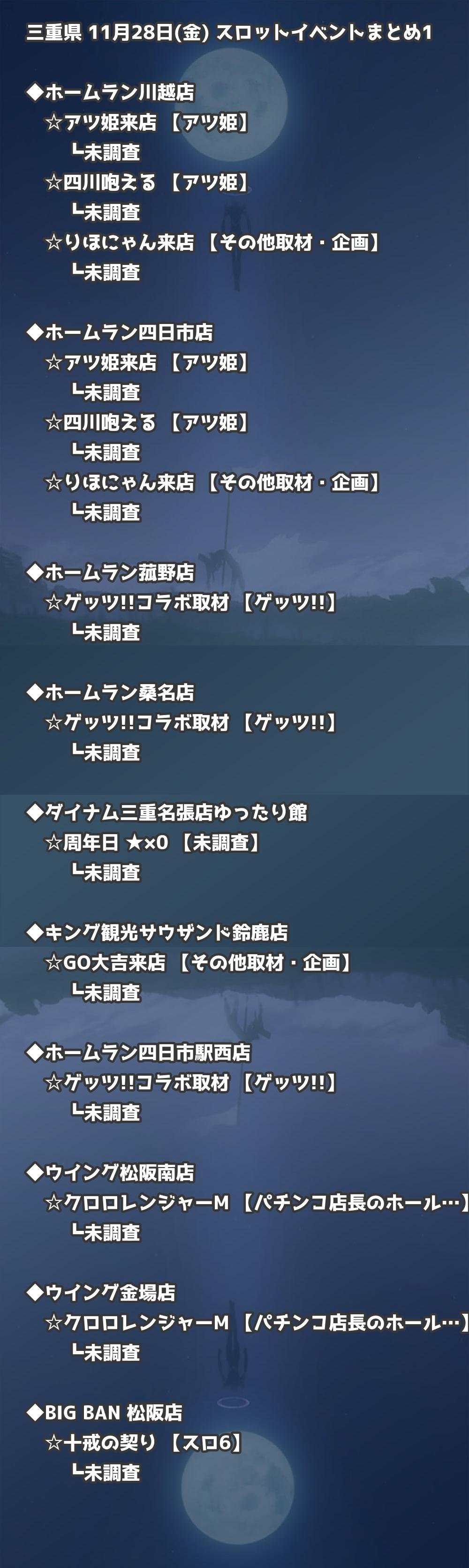 【三重県】11月28日(金) パチンコホールイベント取材まとめ記事です。