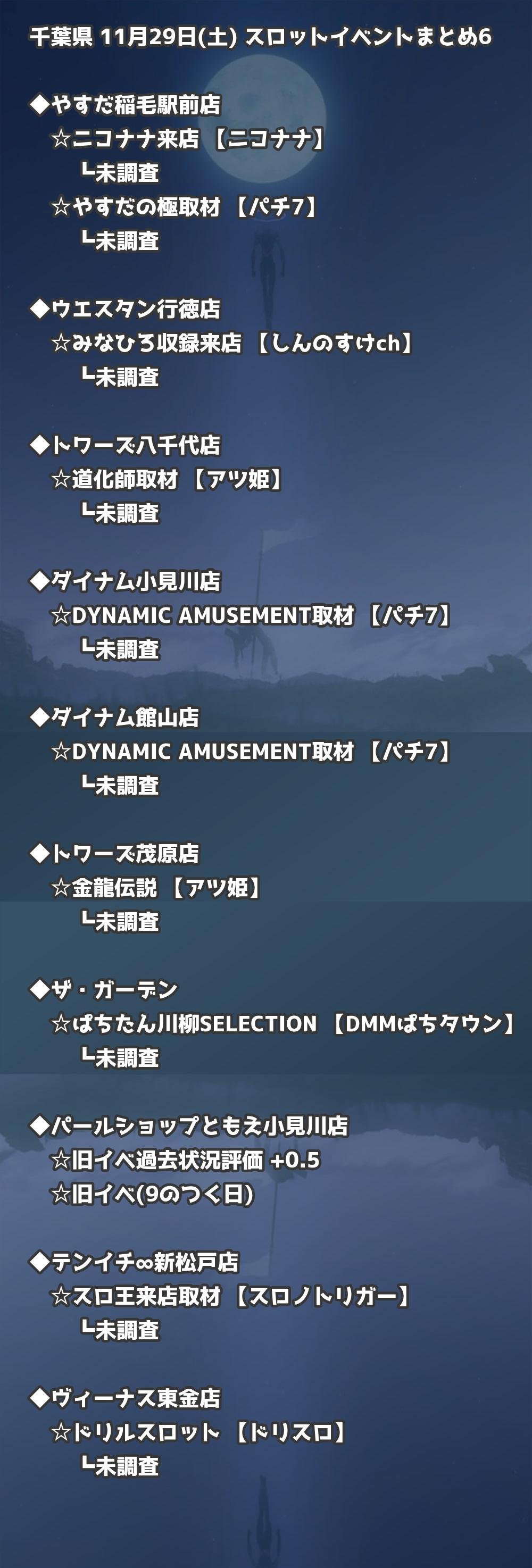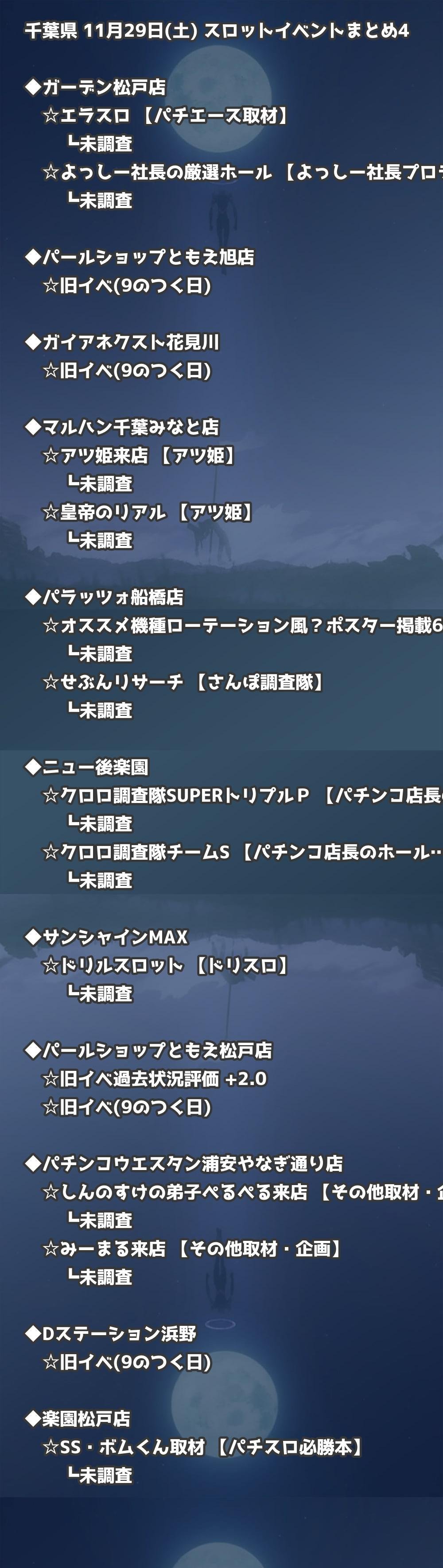 【千葉県】11月29日(土) パチンコホールイベント取材まとめ記事です。