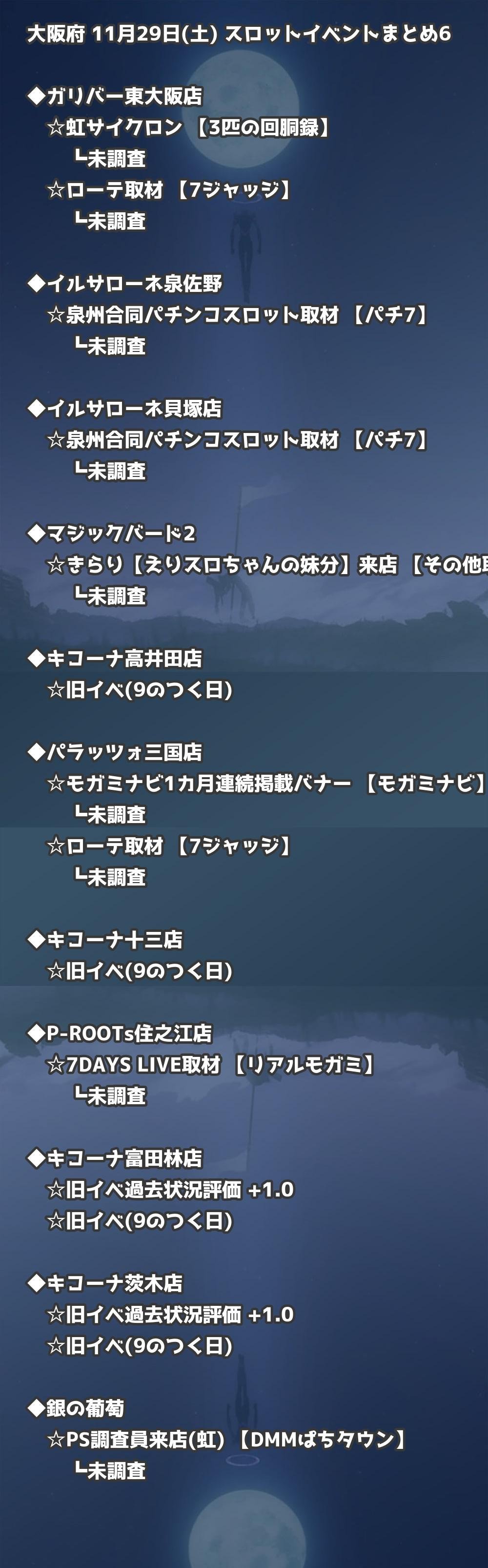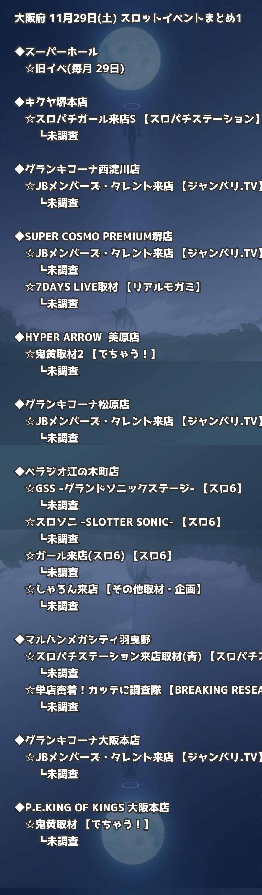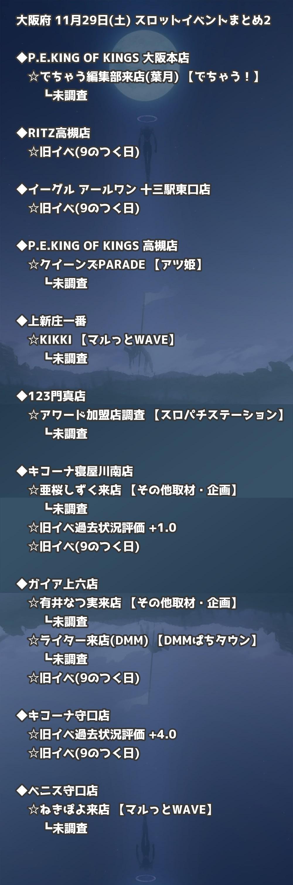 【大阪府】11月29日(土) パチンコホールイベント取材まとめ記事です。