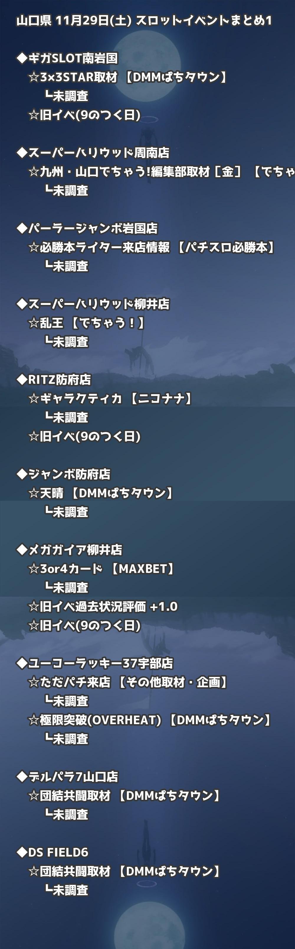 📊 山口県 11月29日(土) 勝てるパチンコ・スロット取材店舗一覧|おすすめ順