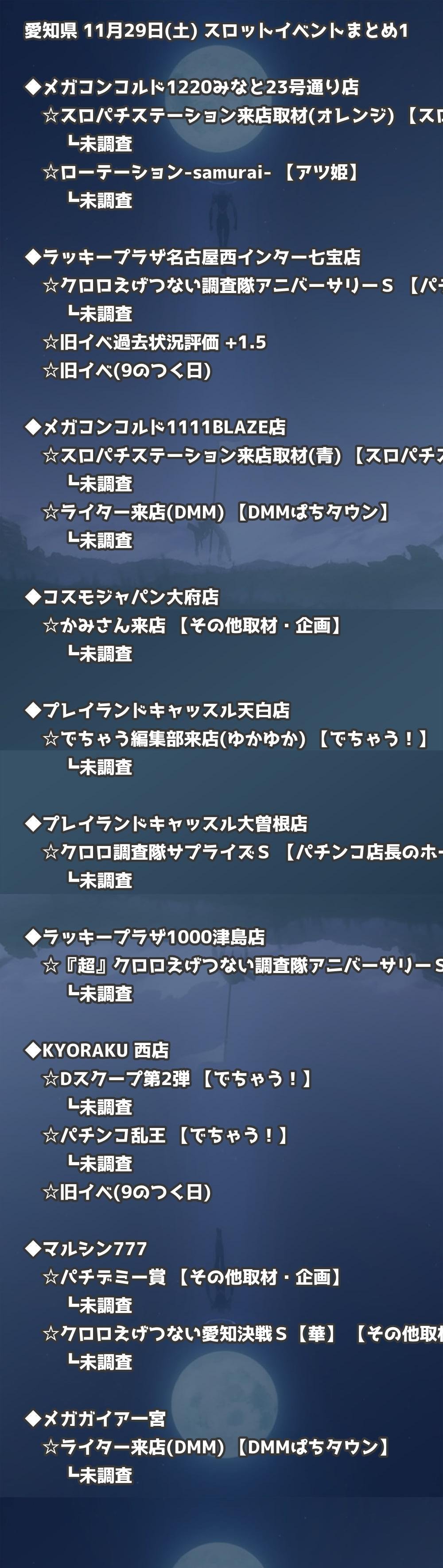 📊 愛知県 11月29日(土) 勝てるパチンコ・スロット取材店舗一覧|おすすめ順