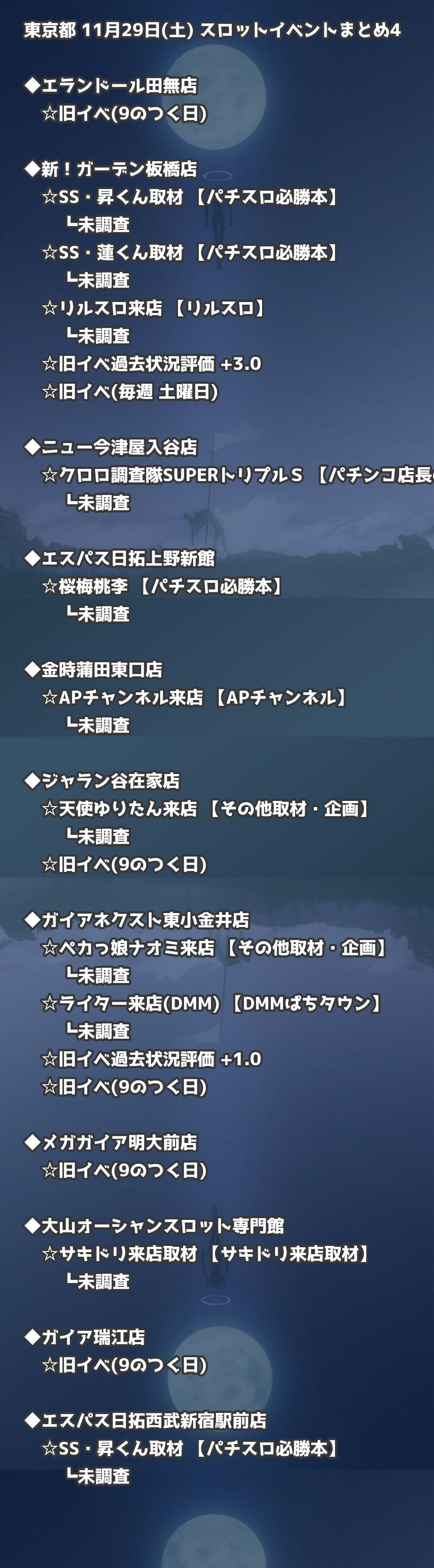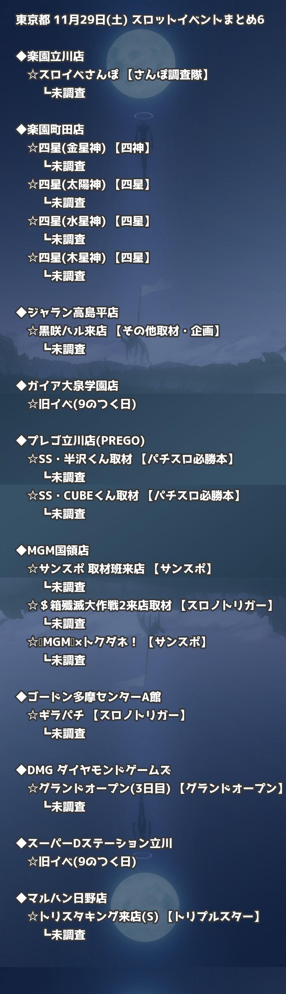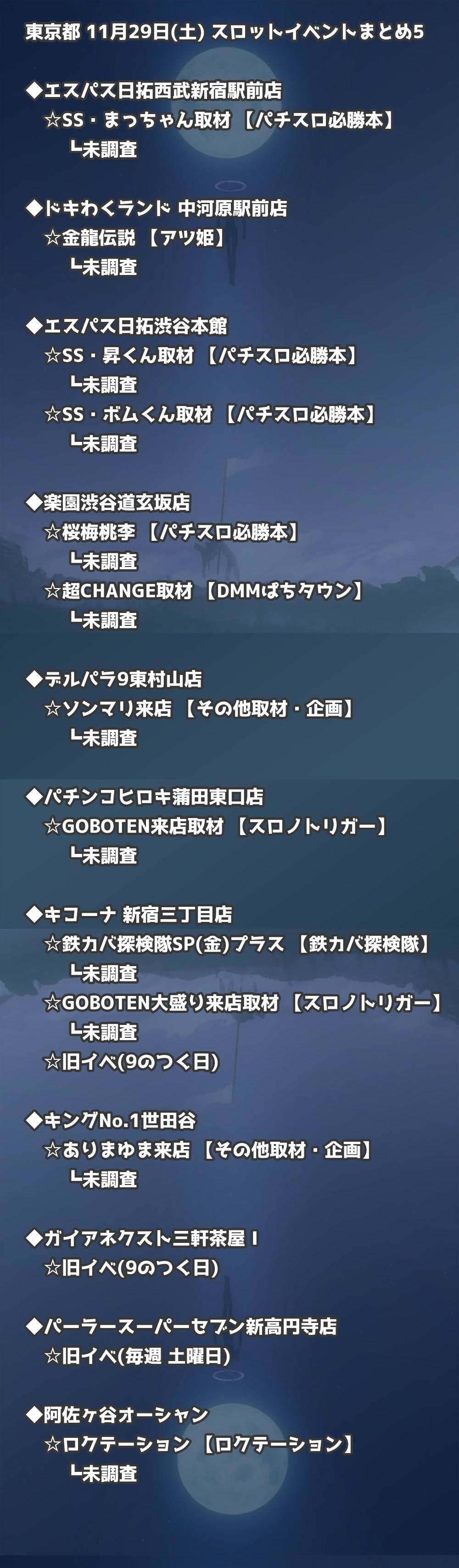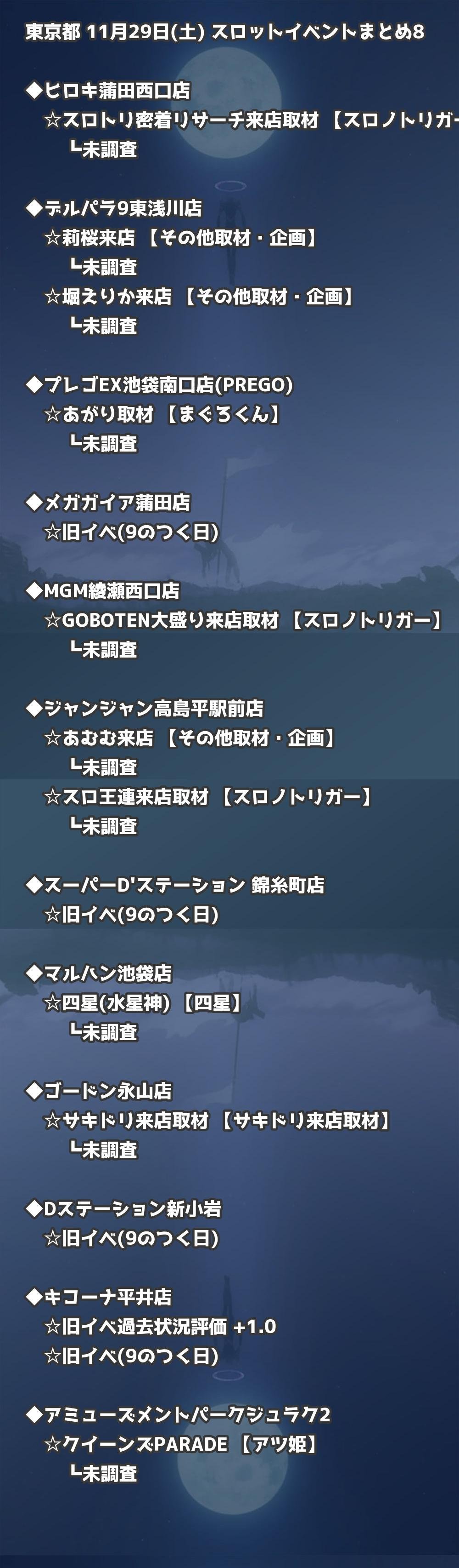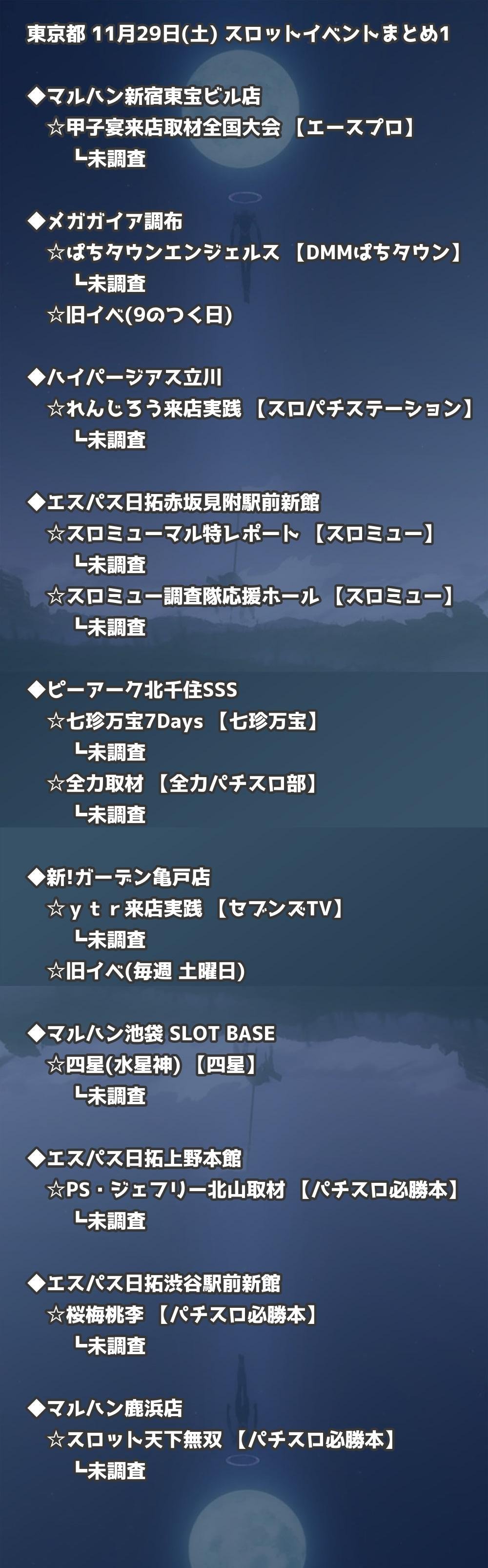 【東京都】11月29日(土) パチンコホールイベント取材まとめ記事です。