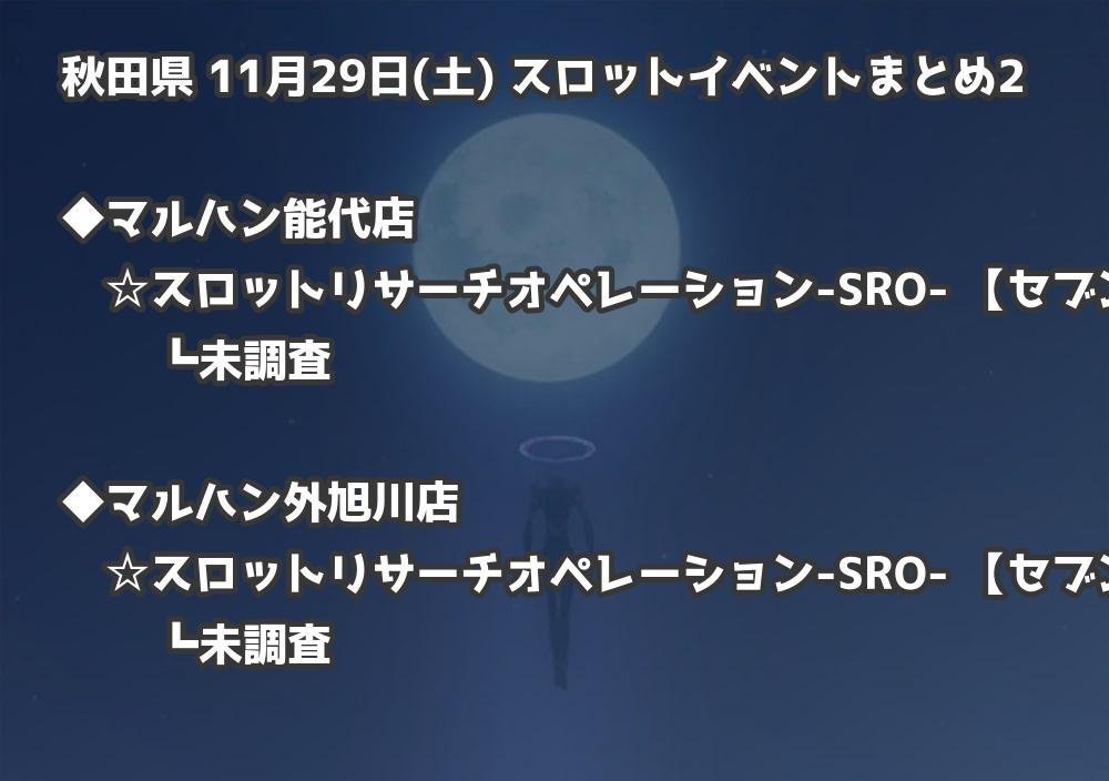 【秋田県】11月29日(土) パチンコホールイベント取材まとめ記事です。