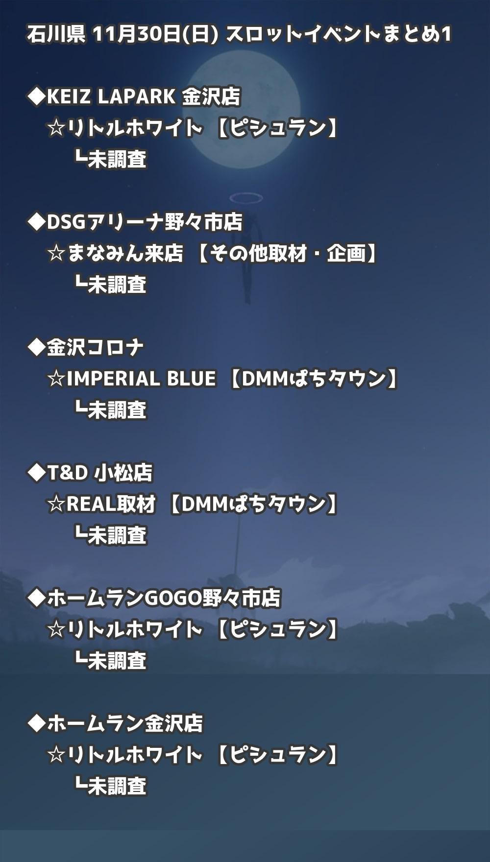 【石川県】11月30日(日) パチンコホールイベント取材まとめ記事です。