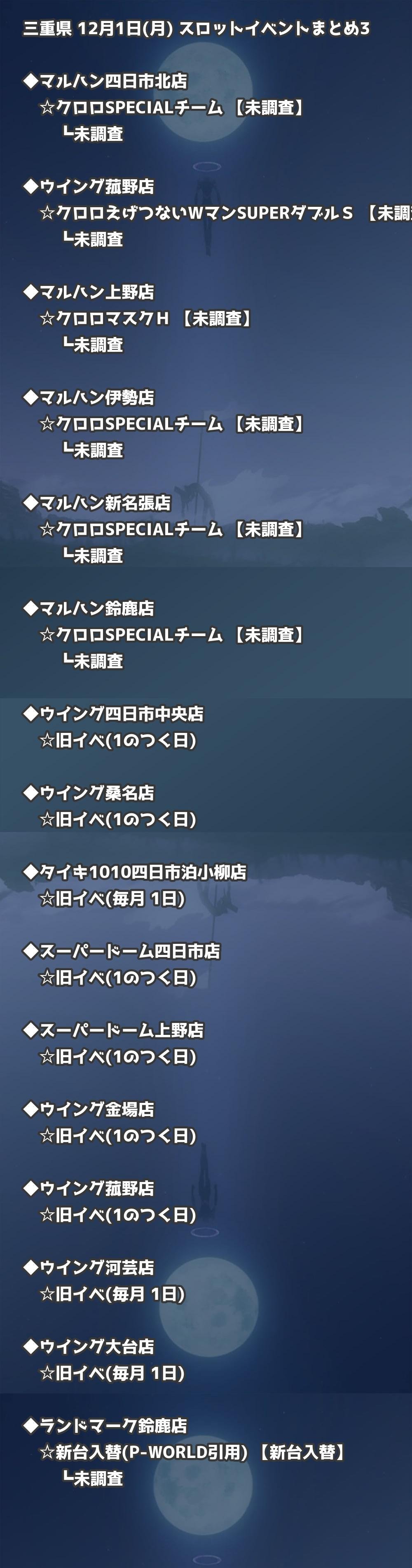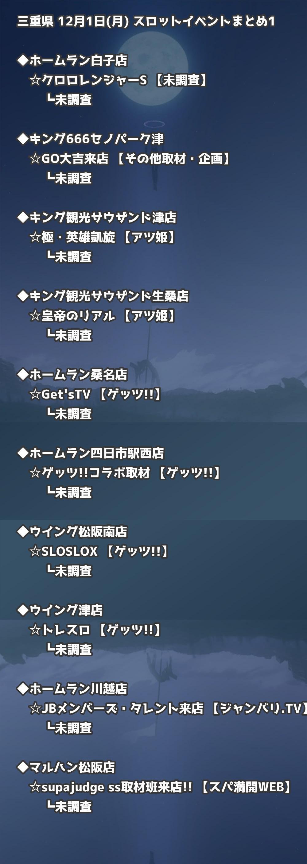 【三重県】12月1日(月) パチンコホールイベント取材まとめ記事です。
