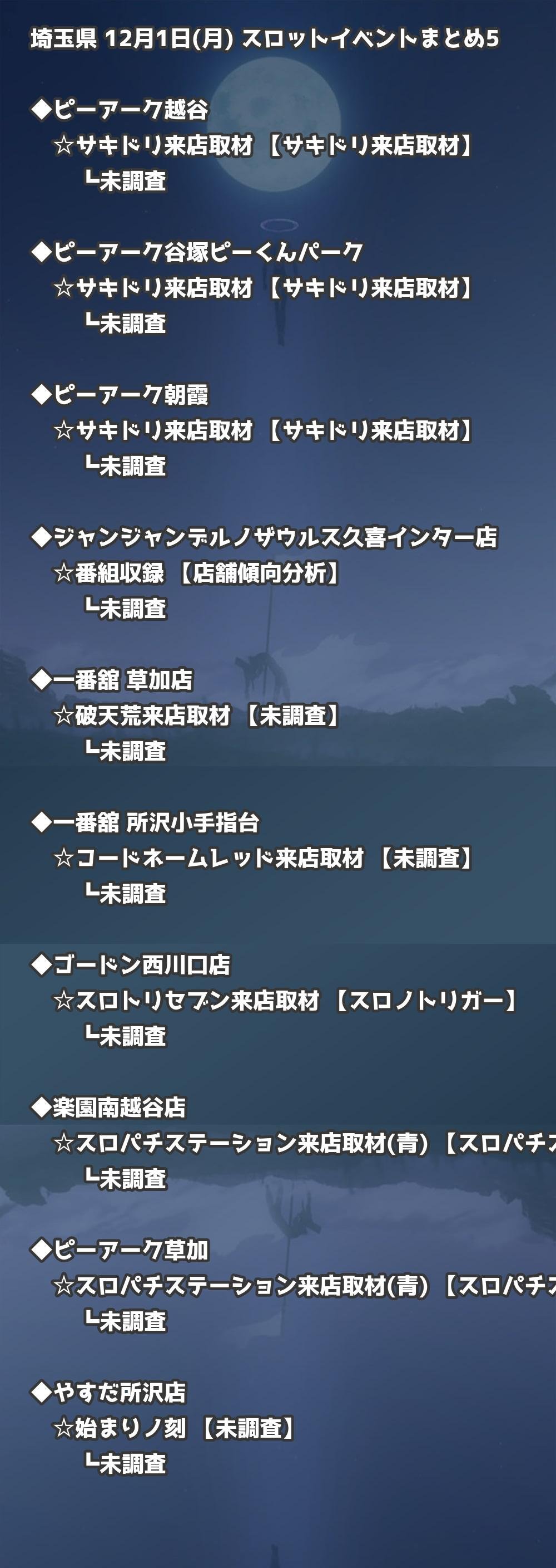 【埼玉県】12月1日(月) パチンコホールイベント取材まとめ記事です。