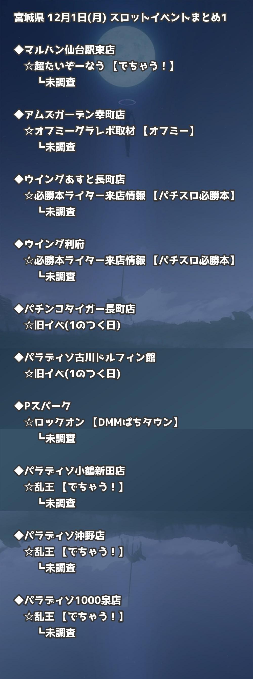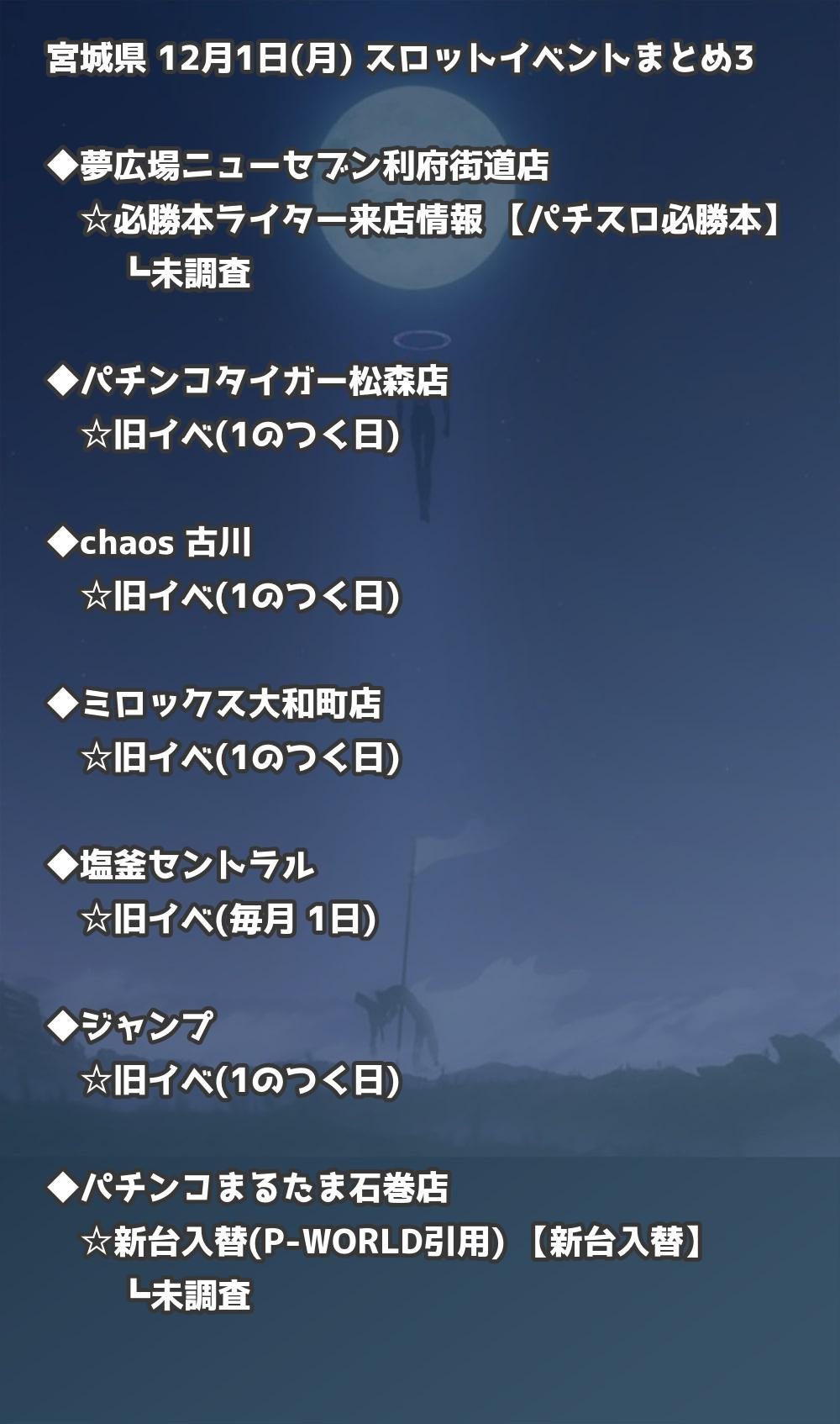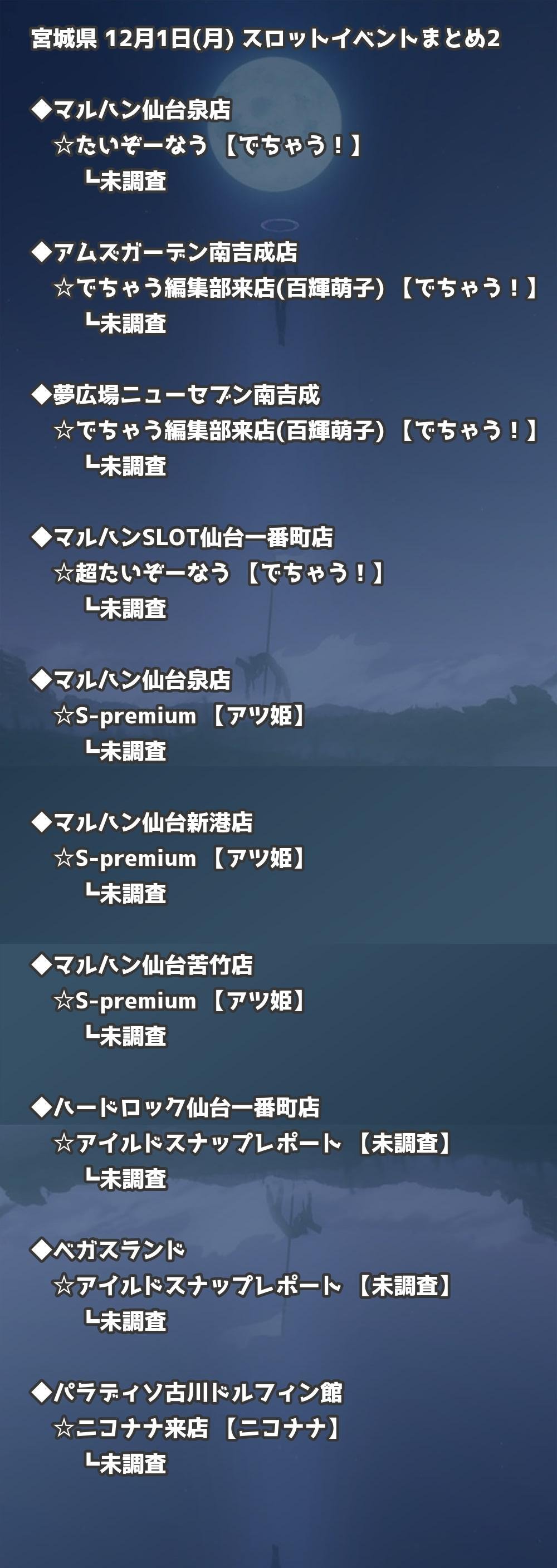 【宮城県】12月1日(月) パチンコホールイベント取材まとめ記事です。