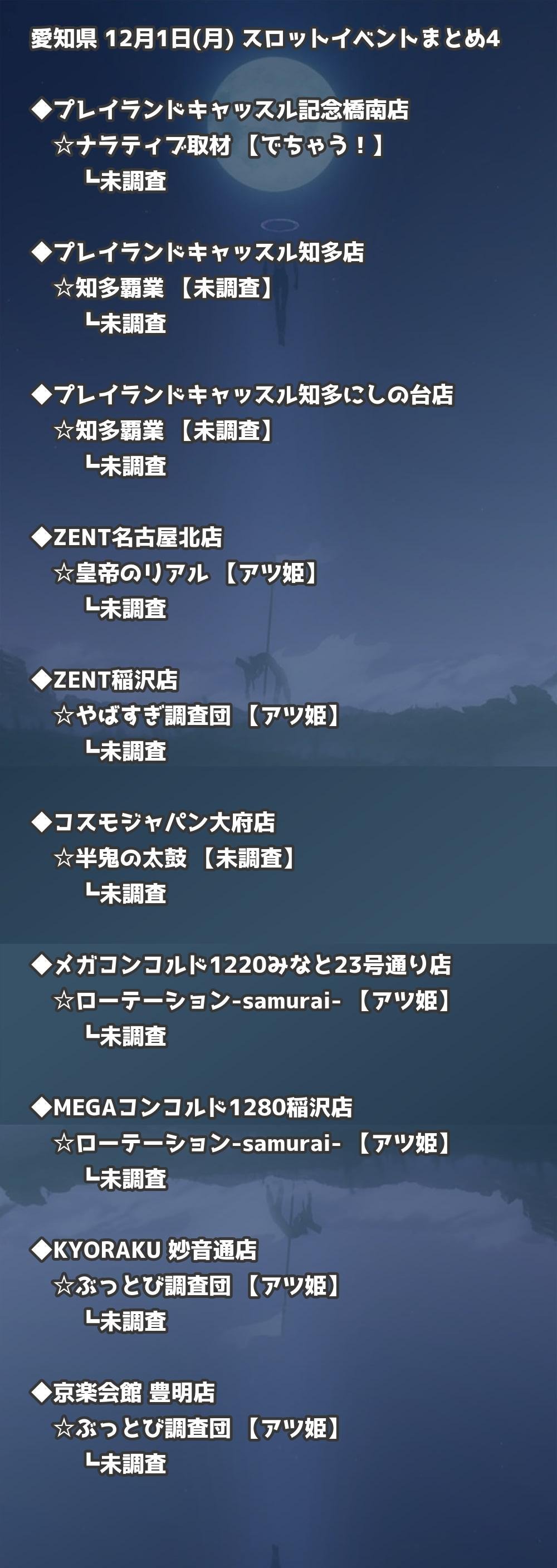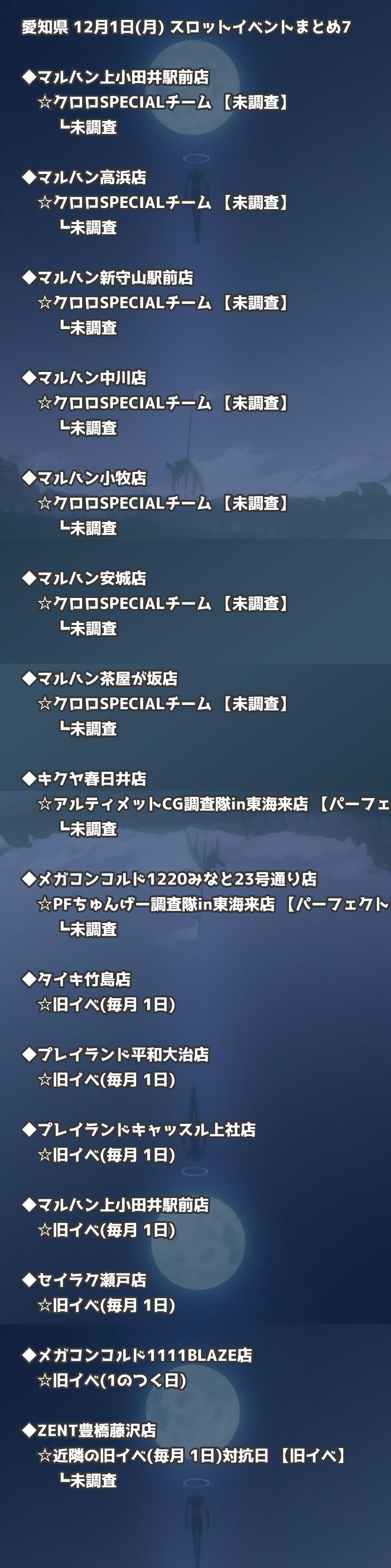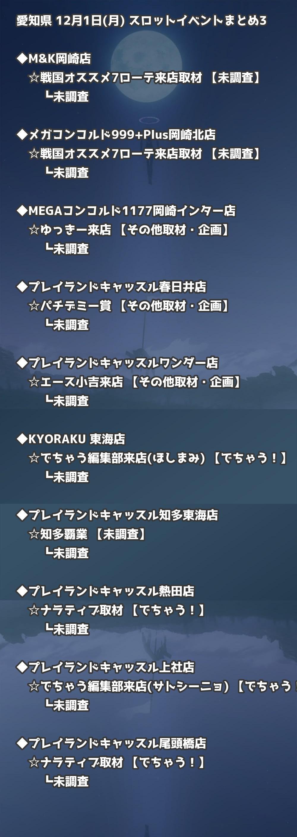 【愛知県】12月1日(月) パチンコホールイベント取材まとめ記事です。