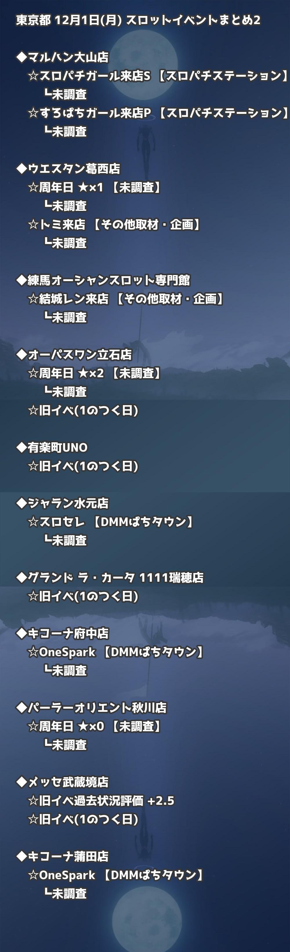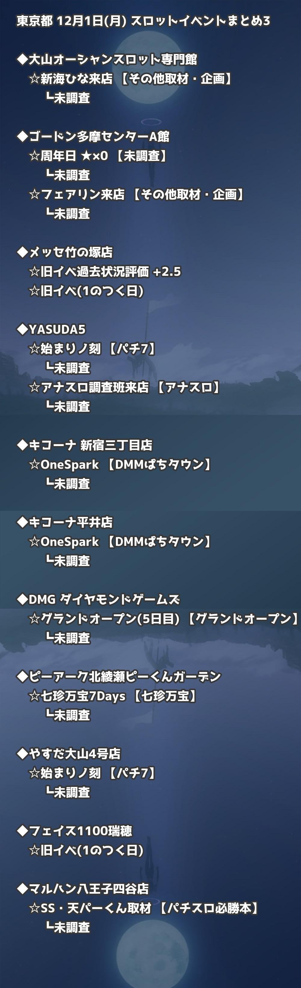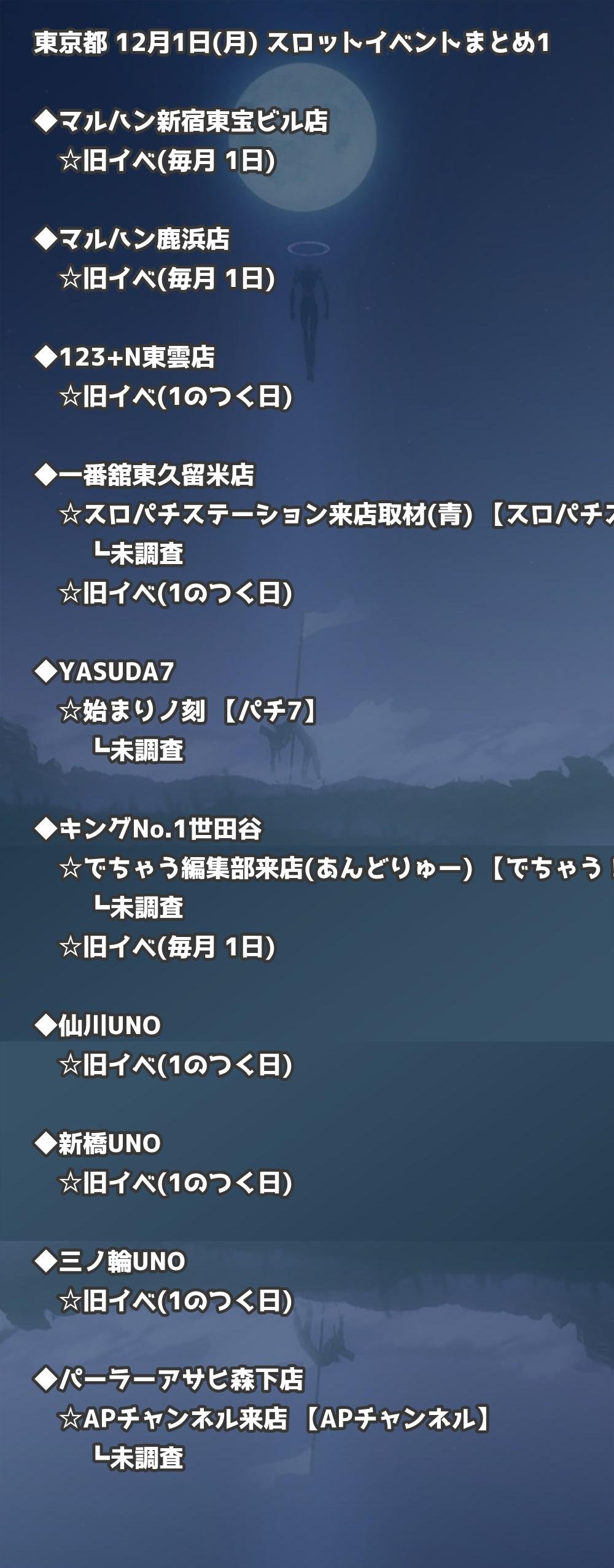 【東京都】12月1日(月) パチンコホールイベント取材まとめ記事です。