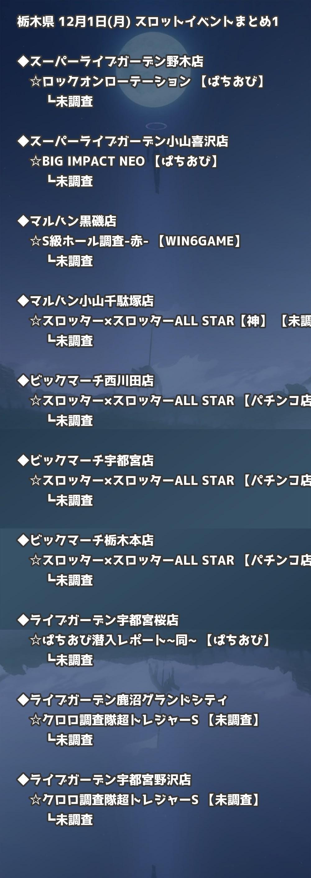 【栃木県】12月1日(月) パチンコホールイベント取材まとめ記事です。