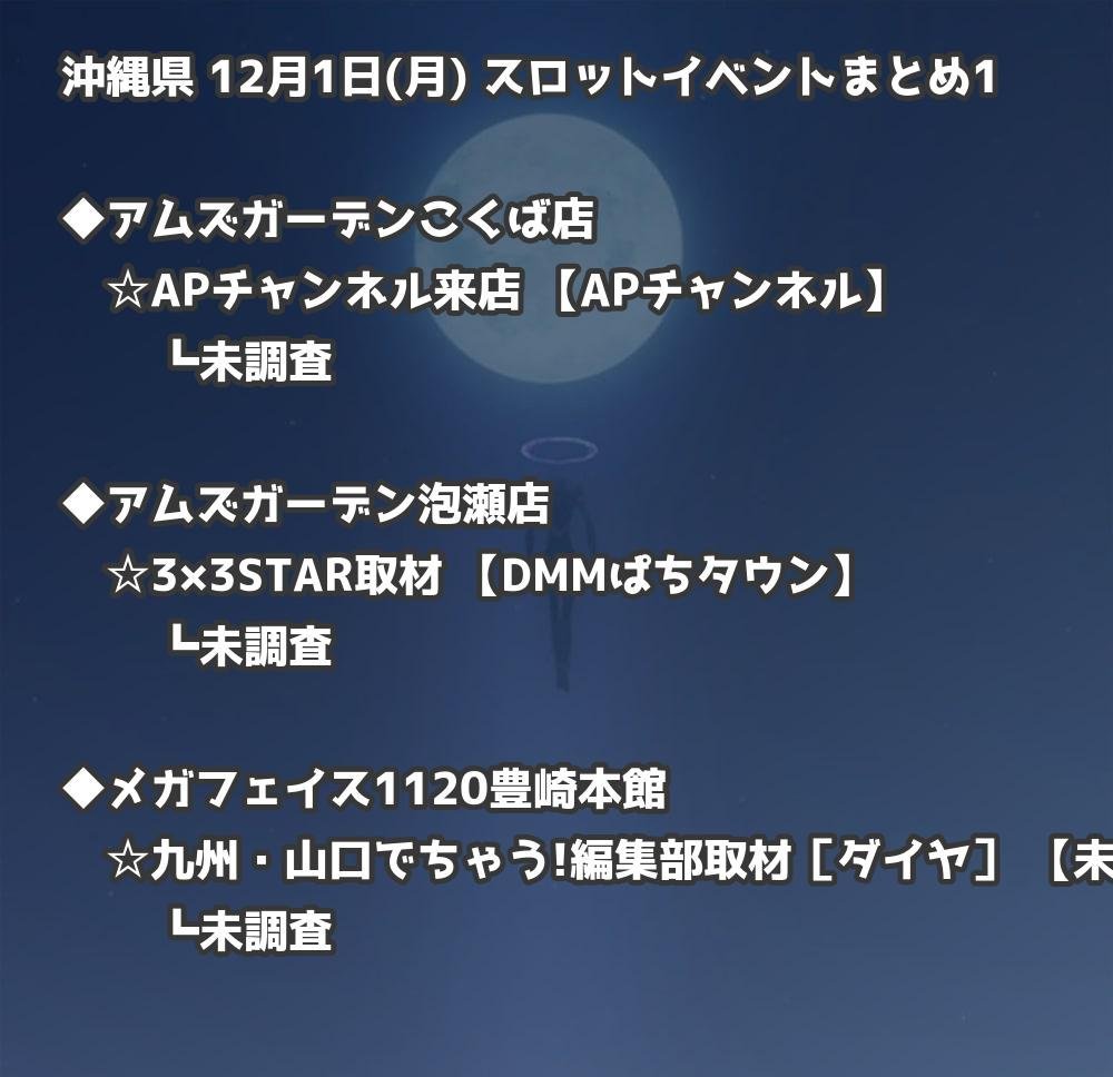 【沖縄県】12月1日(月) パチンコホールイベント取材まとめ記事です。