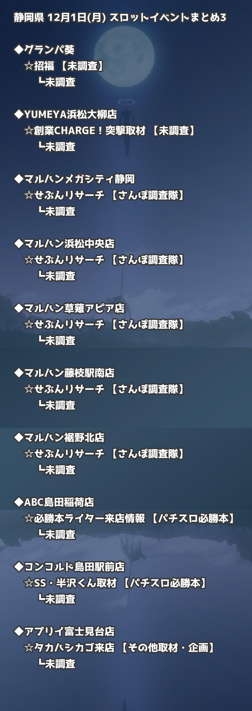 【静岡県】12月1日(月) パチンコホールイベント取材まとめ記事です。