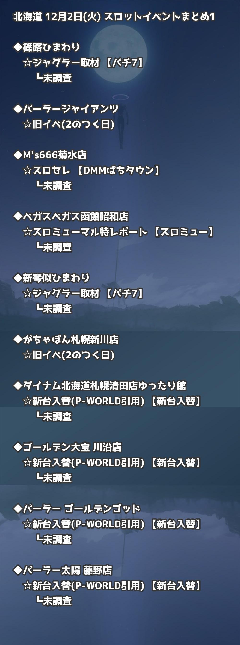 【北海道】12月2日(火) パチンコホールイベント取材まとめ記事です。