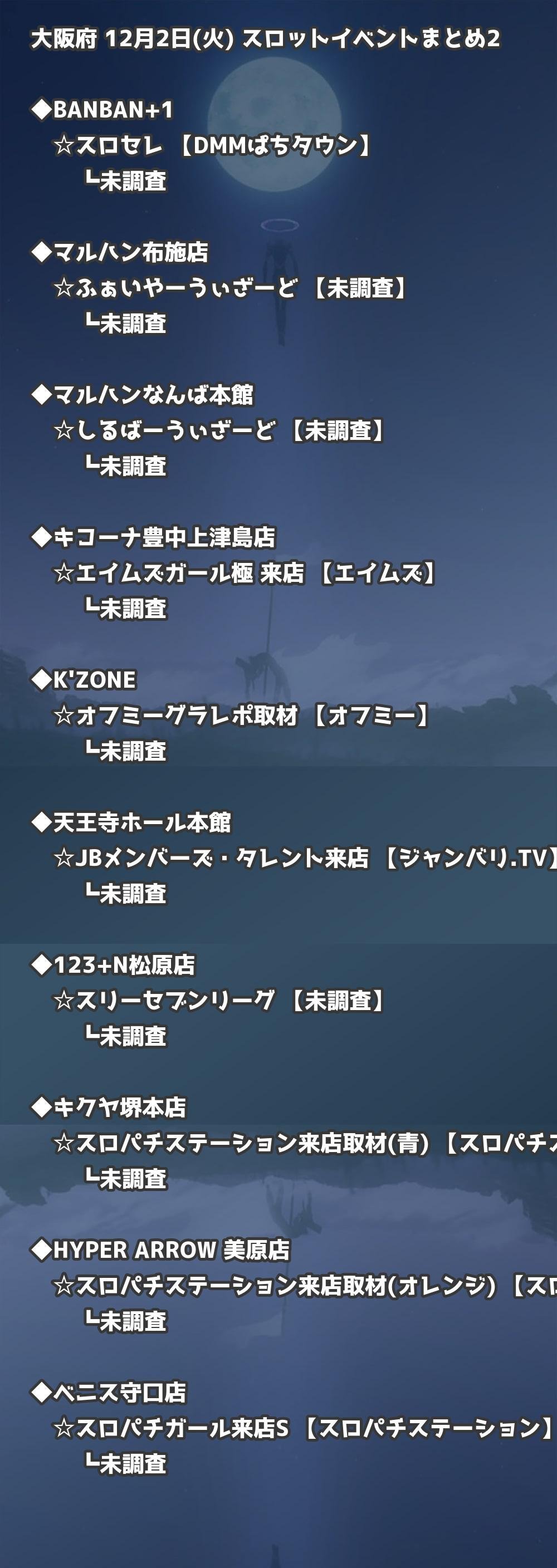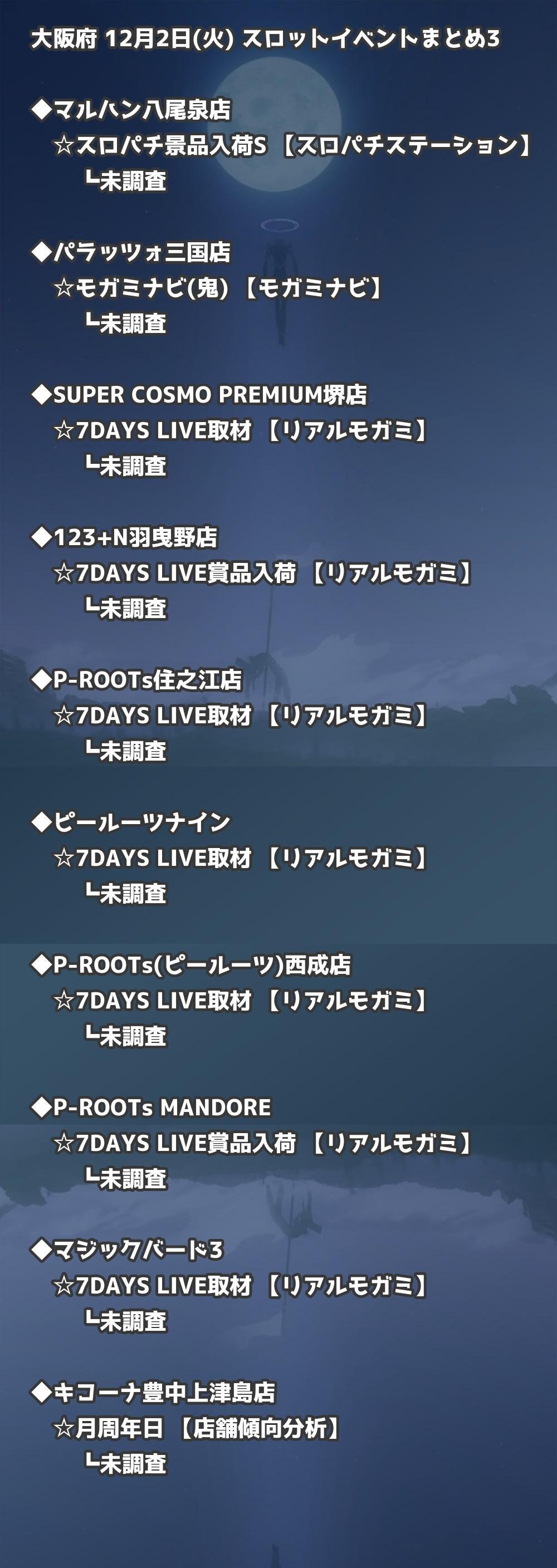 📊 大阪府 12月2日(火) 勝てるパチンコ・スロット取材店舗一覧|おすすめ順
