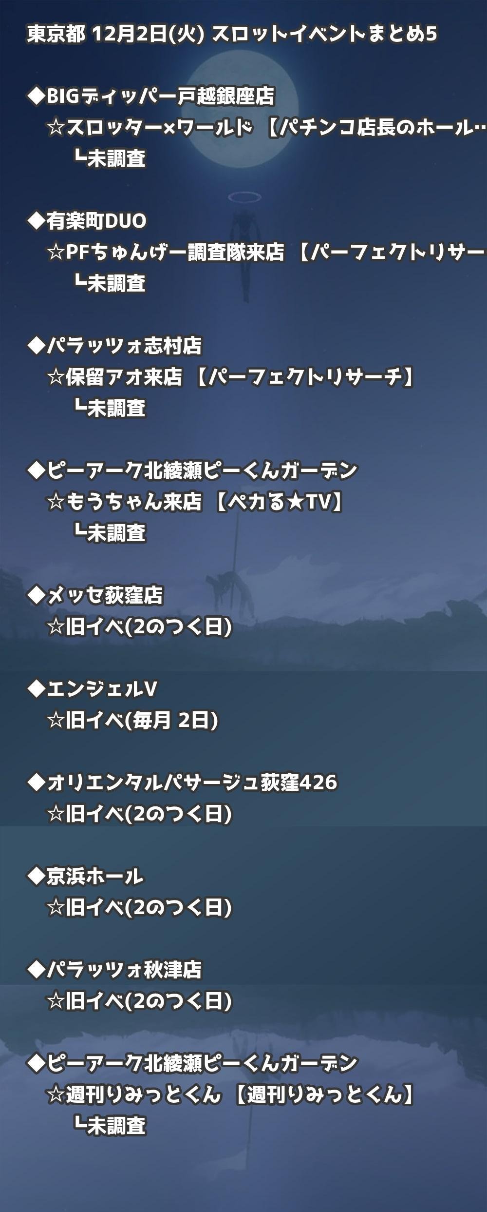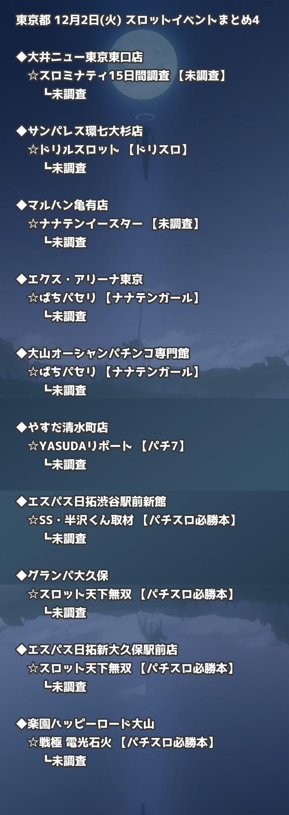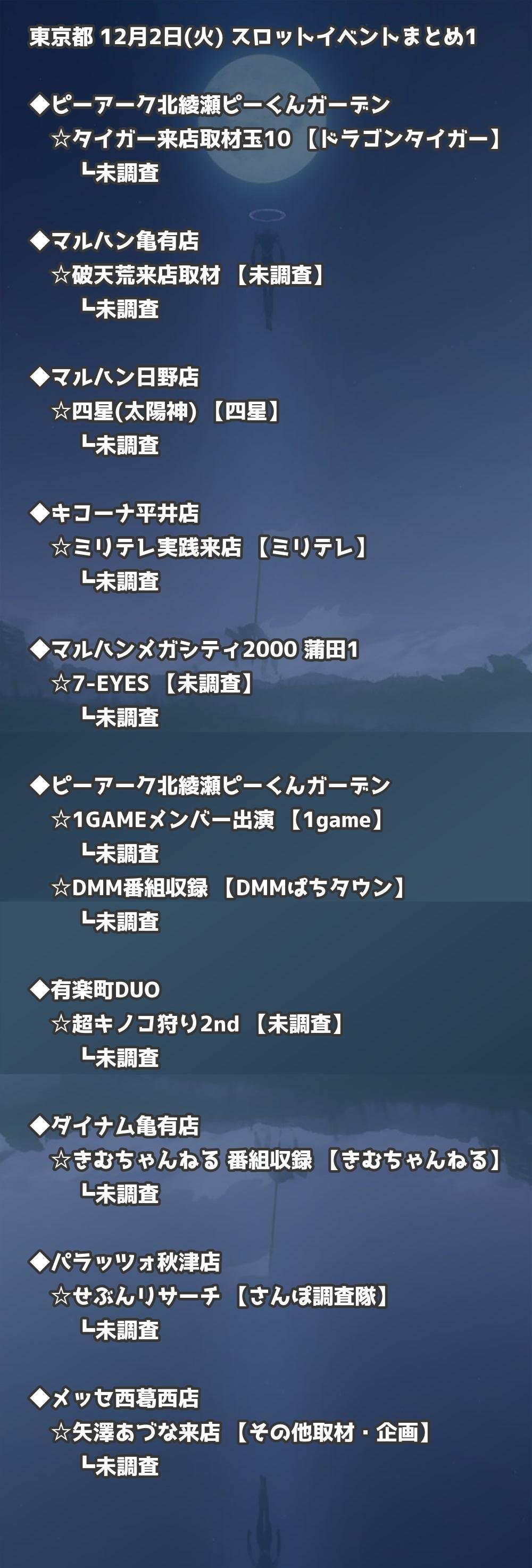 【東京都】12月2日(火) パチンコホールイベント取材まとめ記事です。