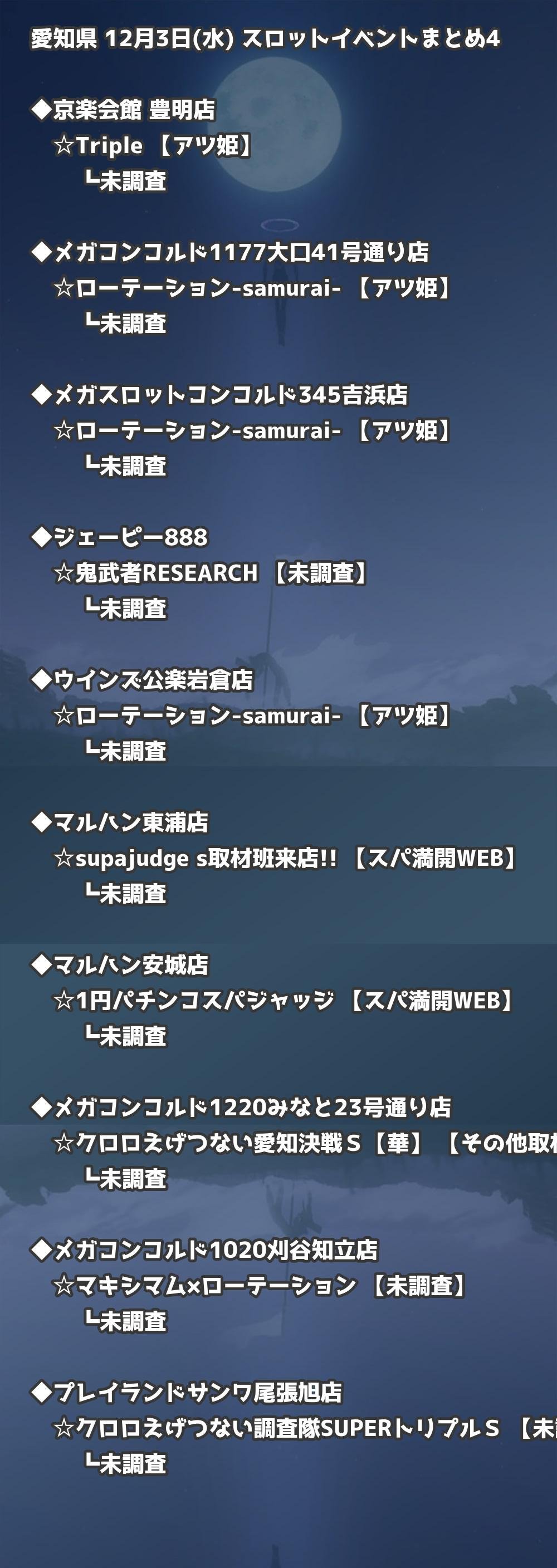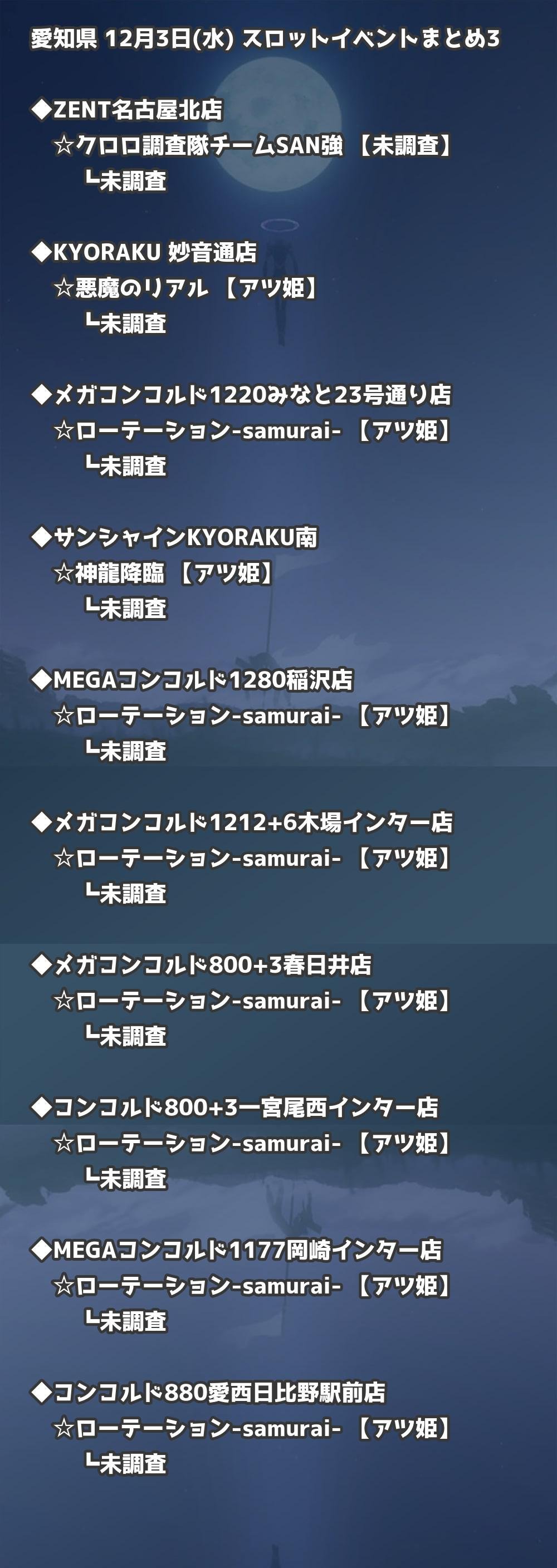 【愛知】12月3日(水) 今日のスロット・パチンコ激熱イベント取材まとめ