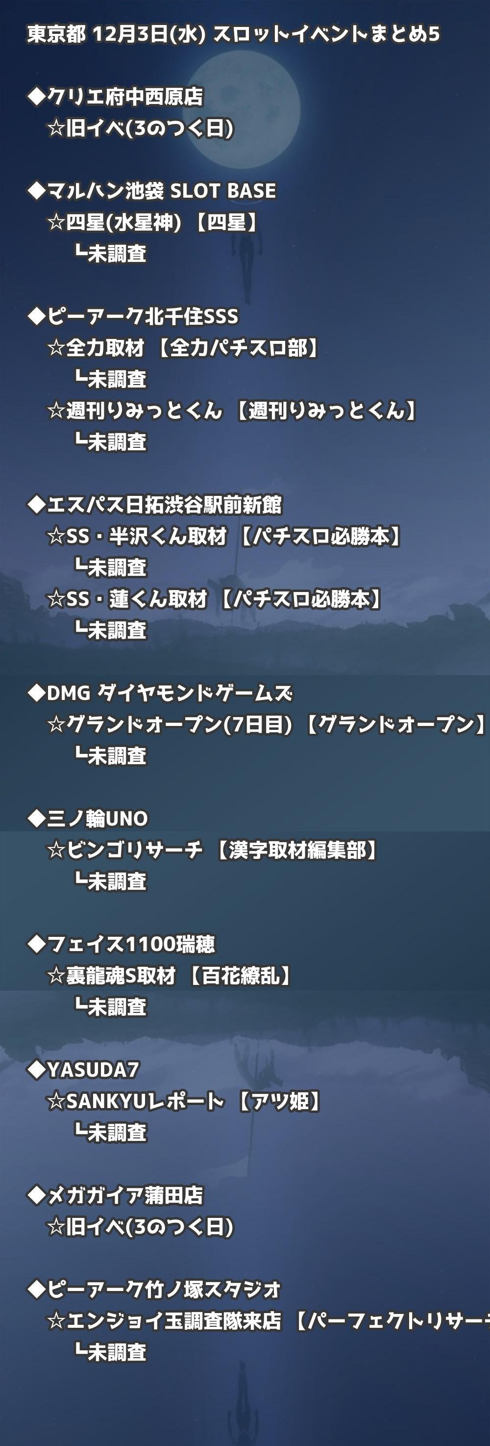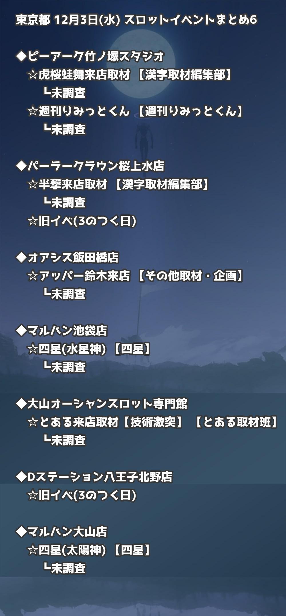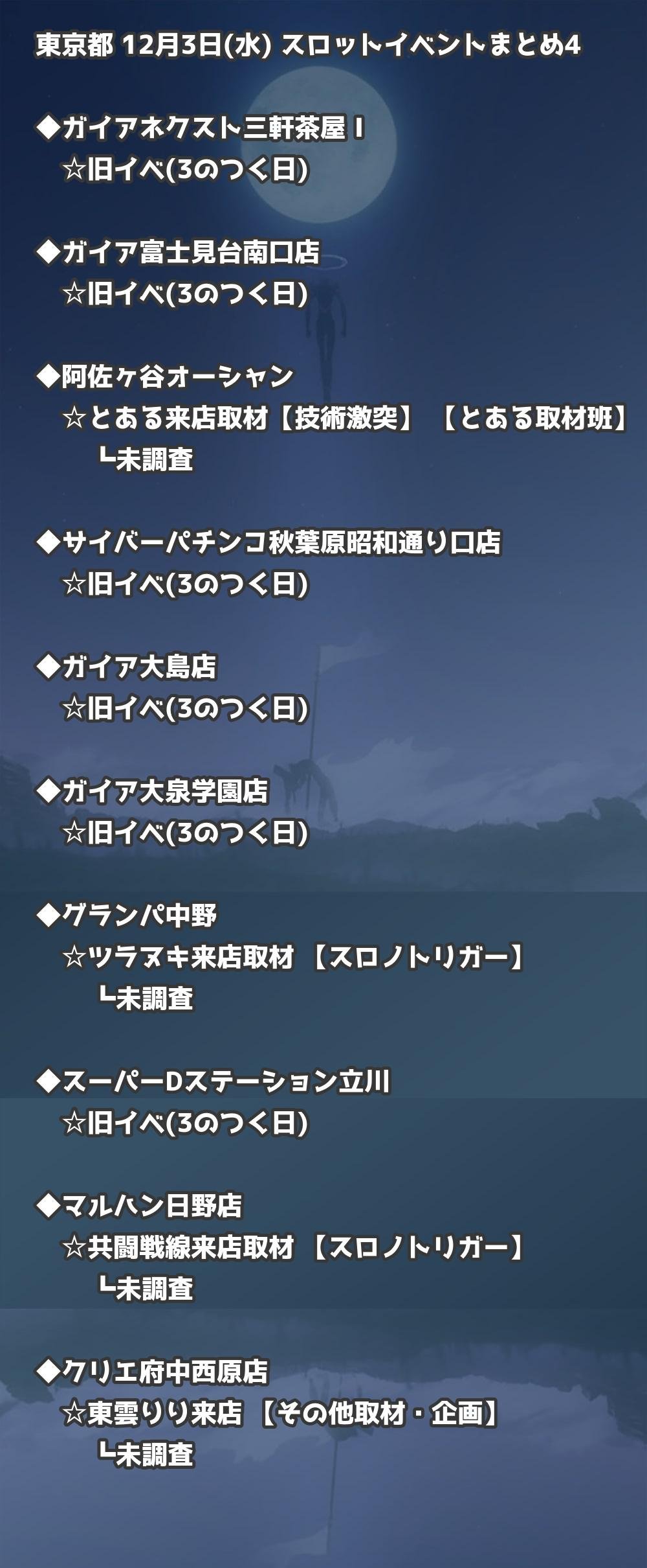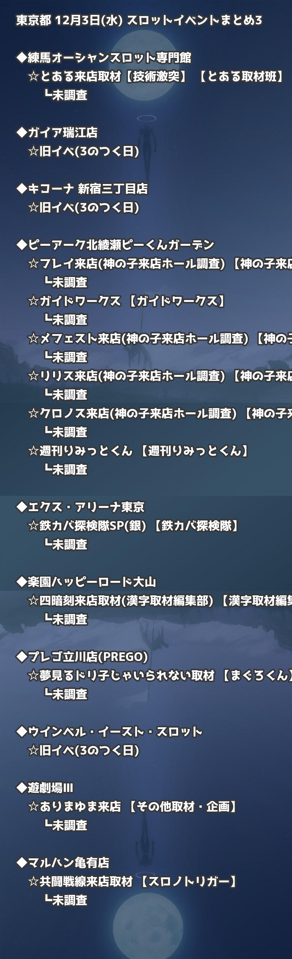 【東京都】12月3日(水) パチンコホールイベント取材まとめ記事です。