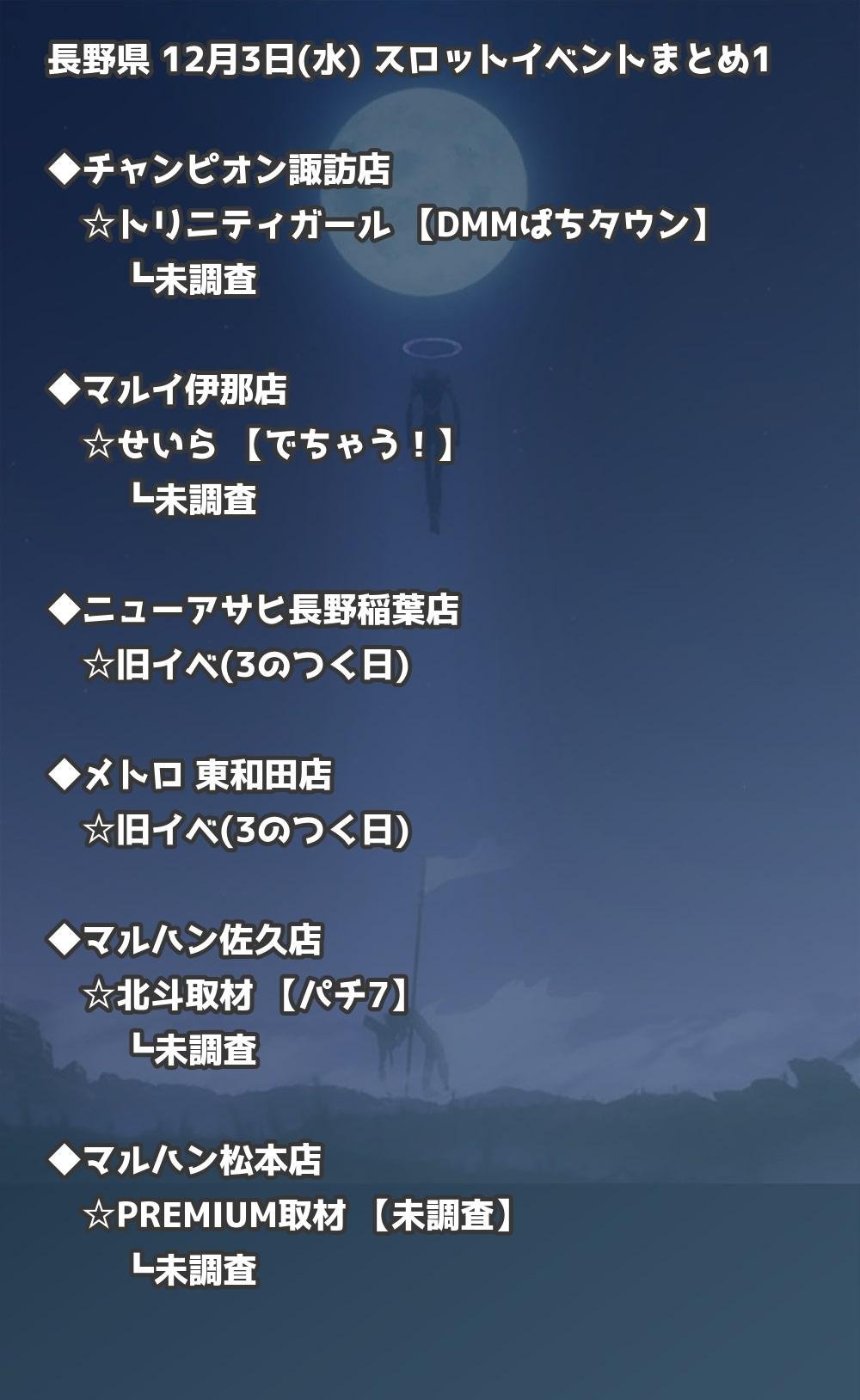 【長野県】12月3日(水) パチンコホールイベント取材まとめ記事です。