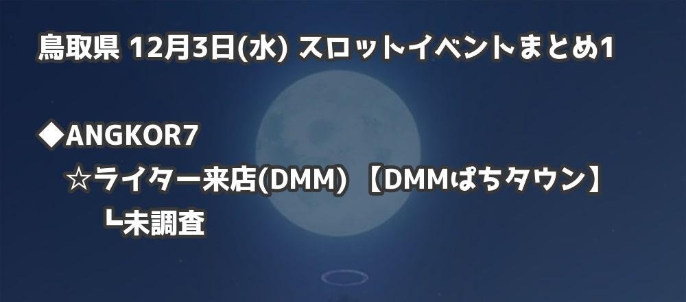 【鳥取県】12月3日(水) パチンコホールイベント取材まとめ記事です。