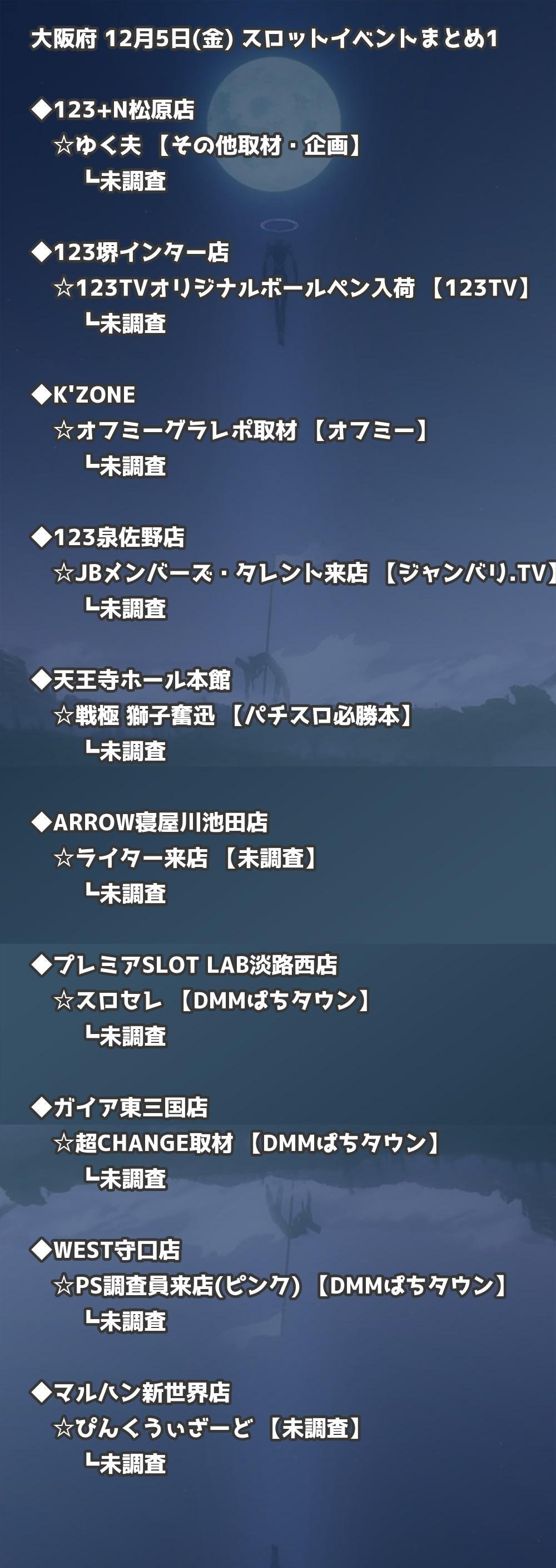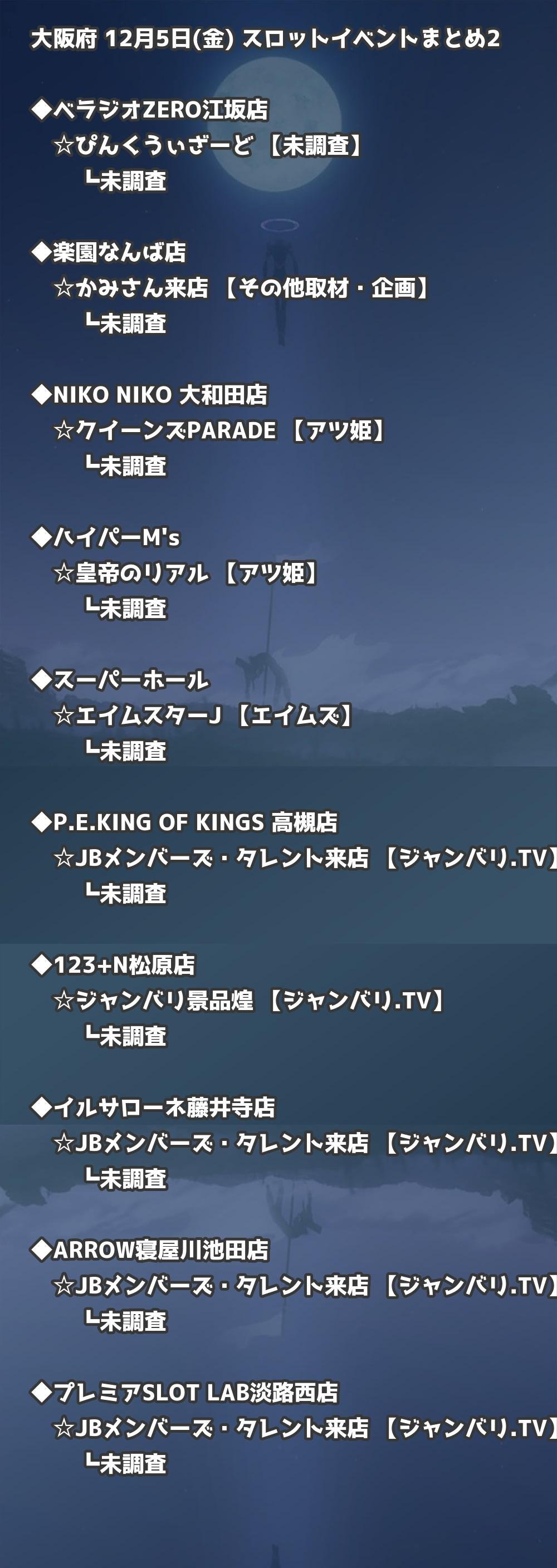 【大阪府】12月5日(金) パチンコホールイベント取材まとめ記事です。