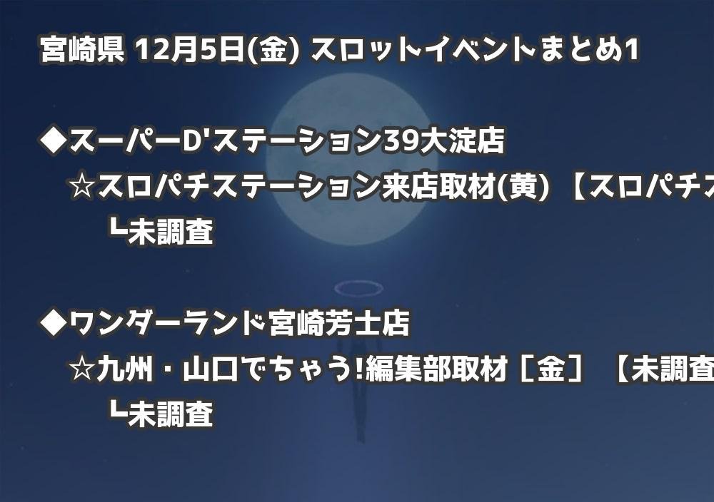 【宮崎県】12月5日(金) パチンコホールイベント取材まとめ記事です。