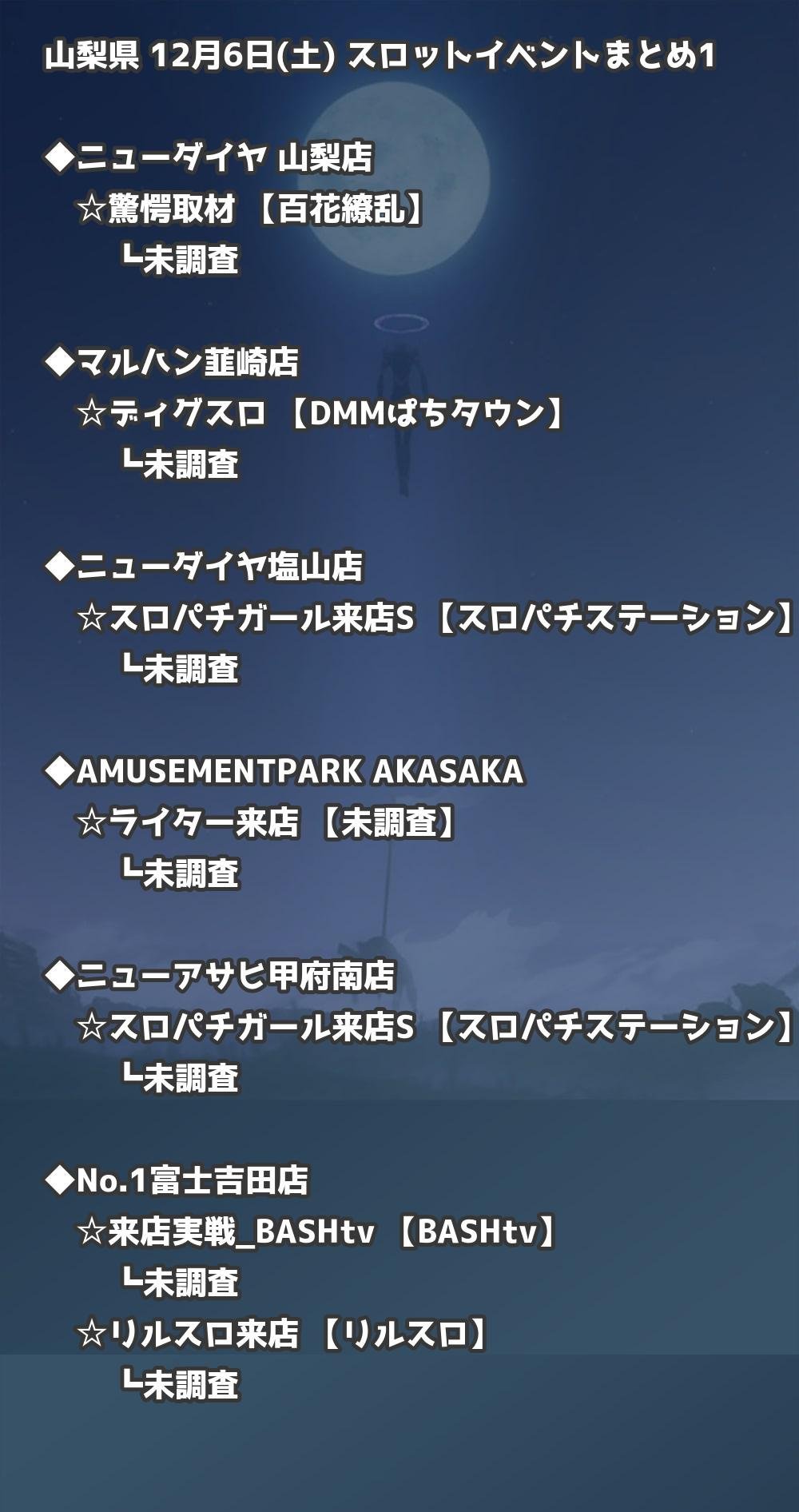 📊 山梨県 12月6日(土) 勝てるパチンコ・スロット取材店舗一覧|おすすめ順