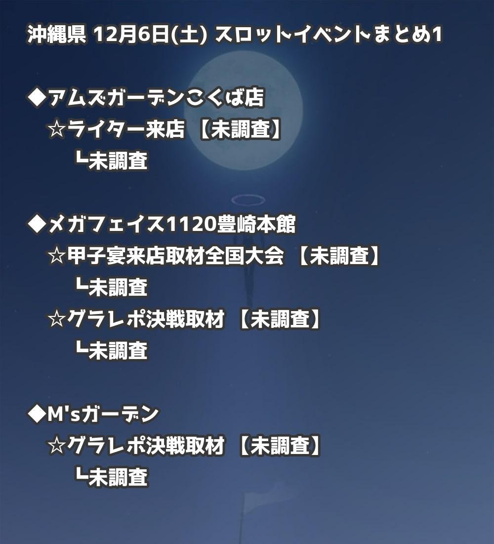 【沖縄県】12月6日(土) パチンコホールイベント取材まとめ記事です。