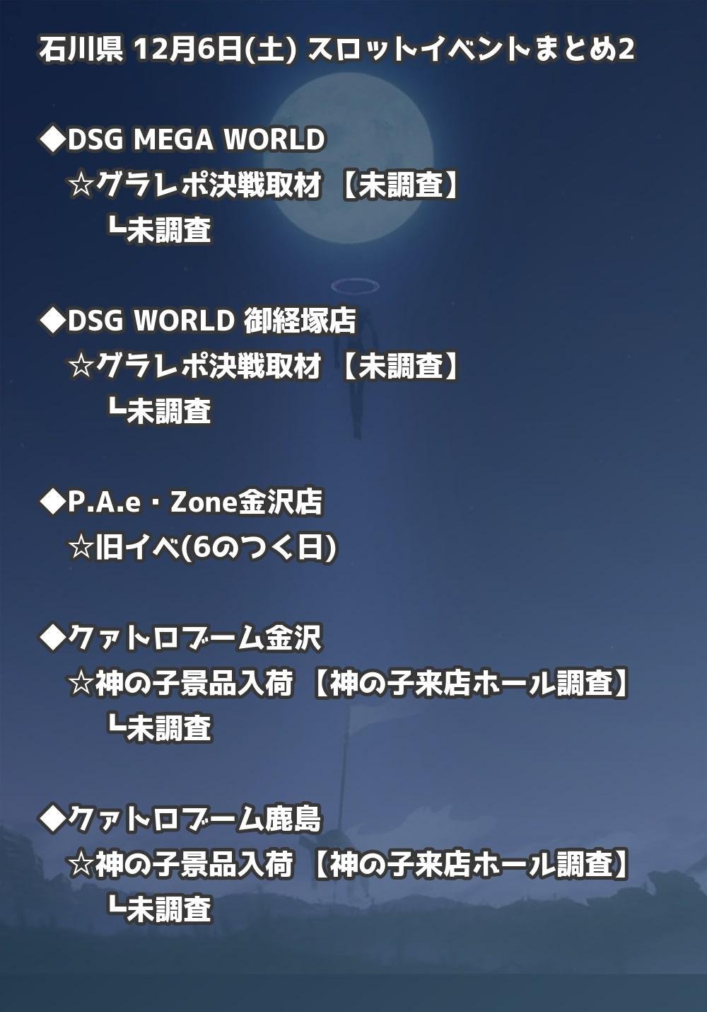 【石川県】12月6日(土) パチンコホールイベント取材まとめ記事です。
