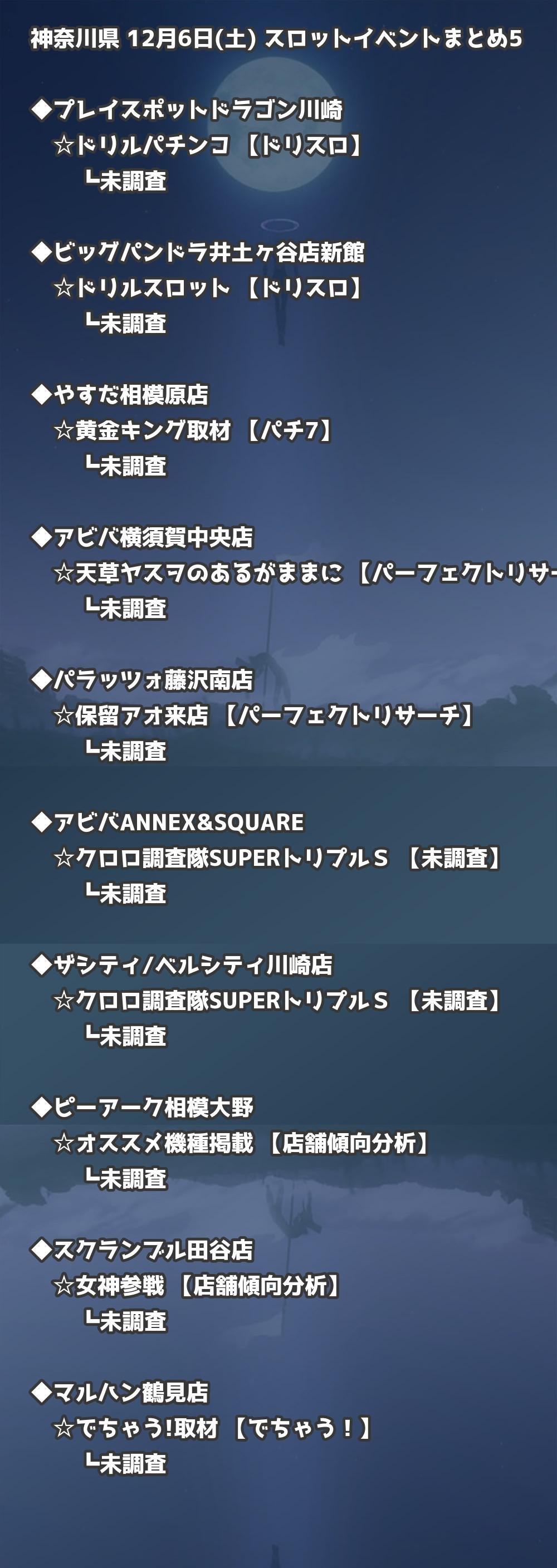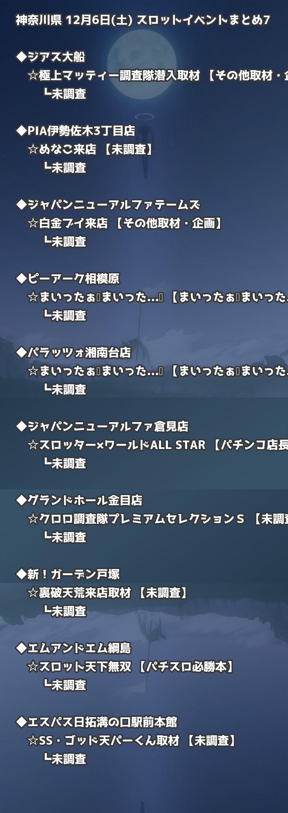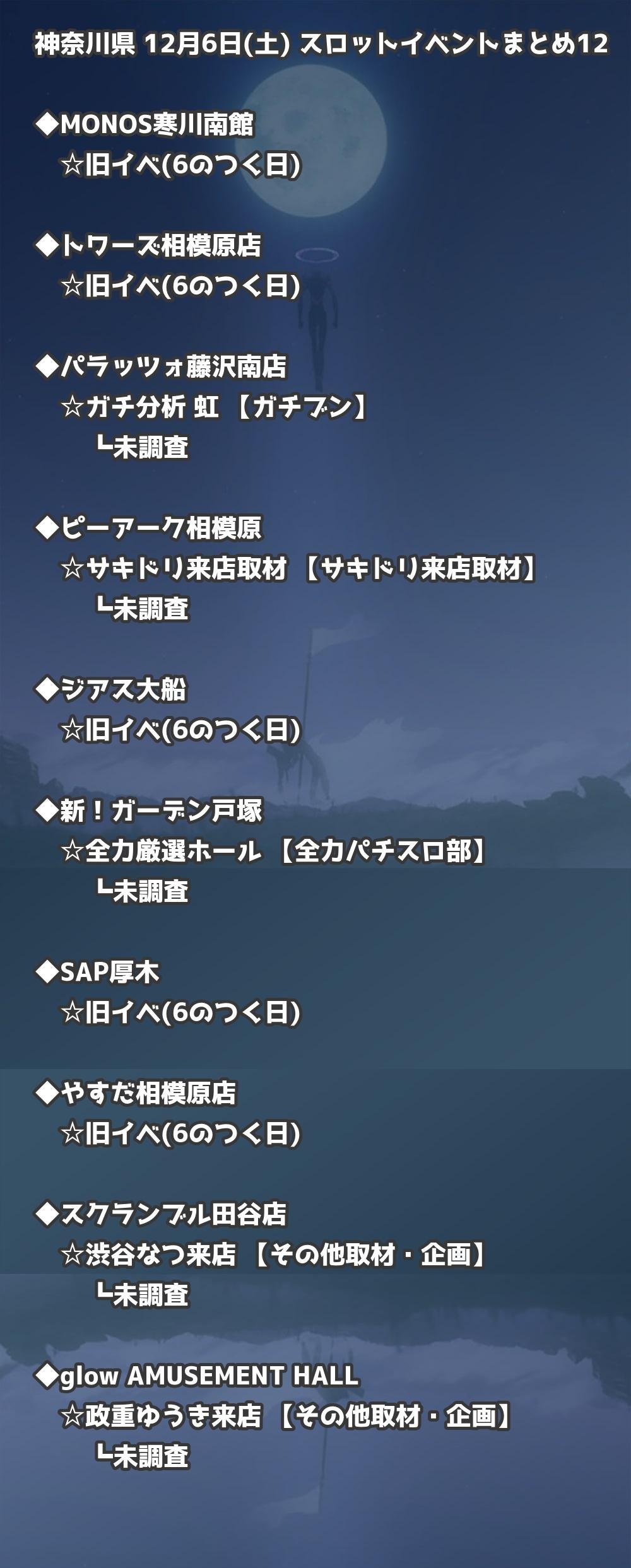 【神奈川県】12月6日(土) パチンコホールイベント取材まとめ記事です。