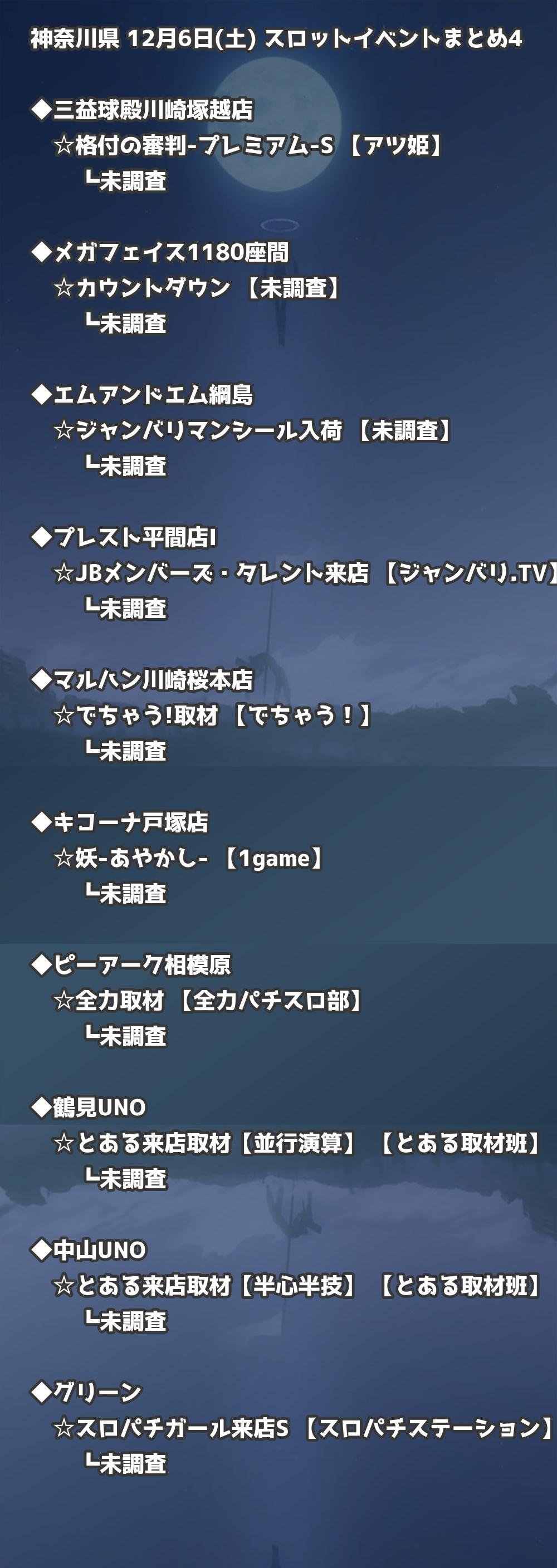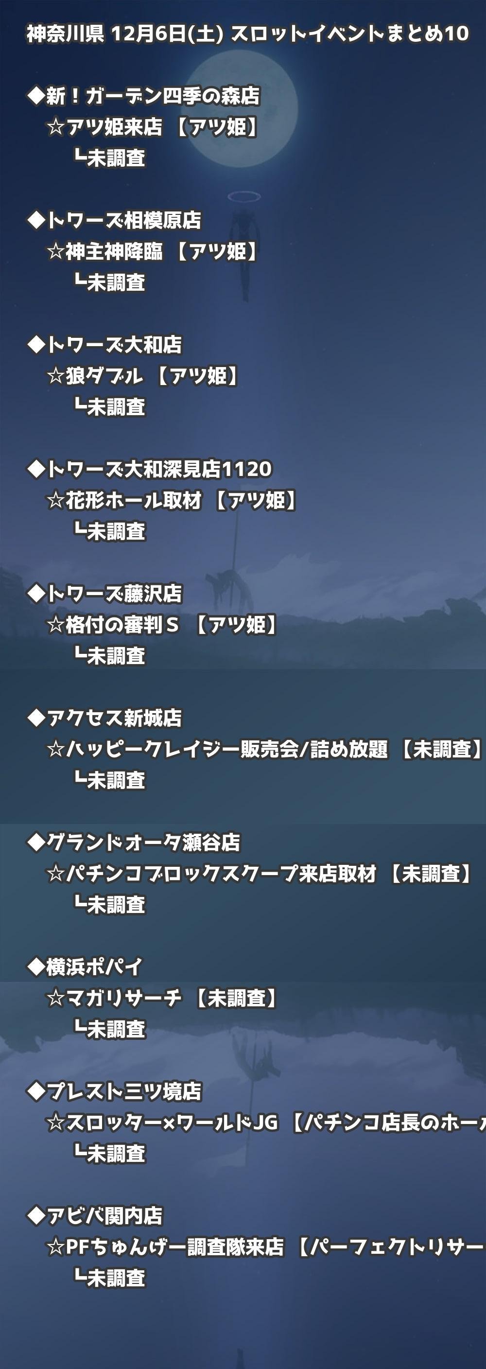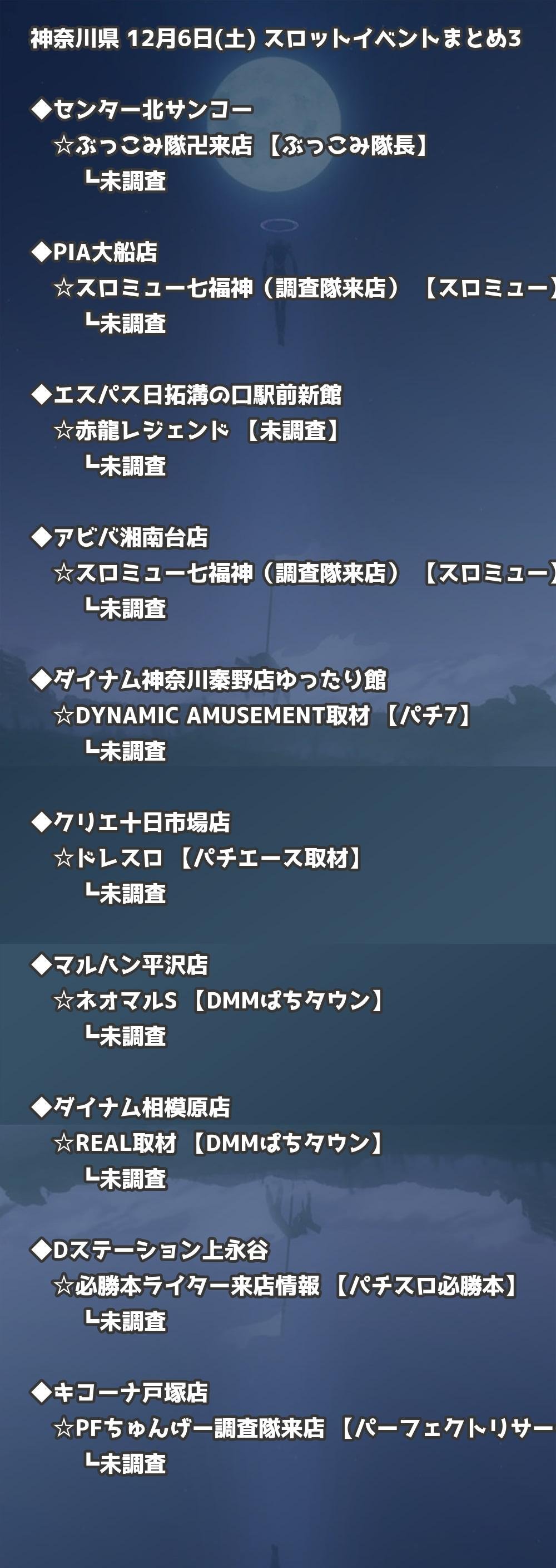 【神奈川県】12月6日(土) パチンコホールイベント取材まとめ記事です。