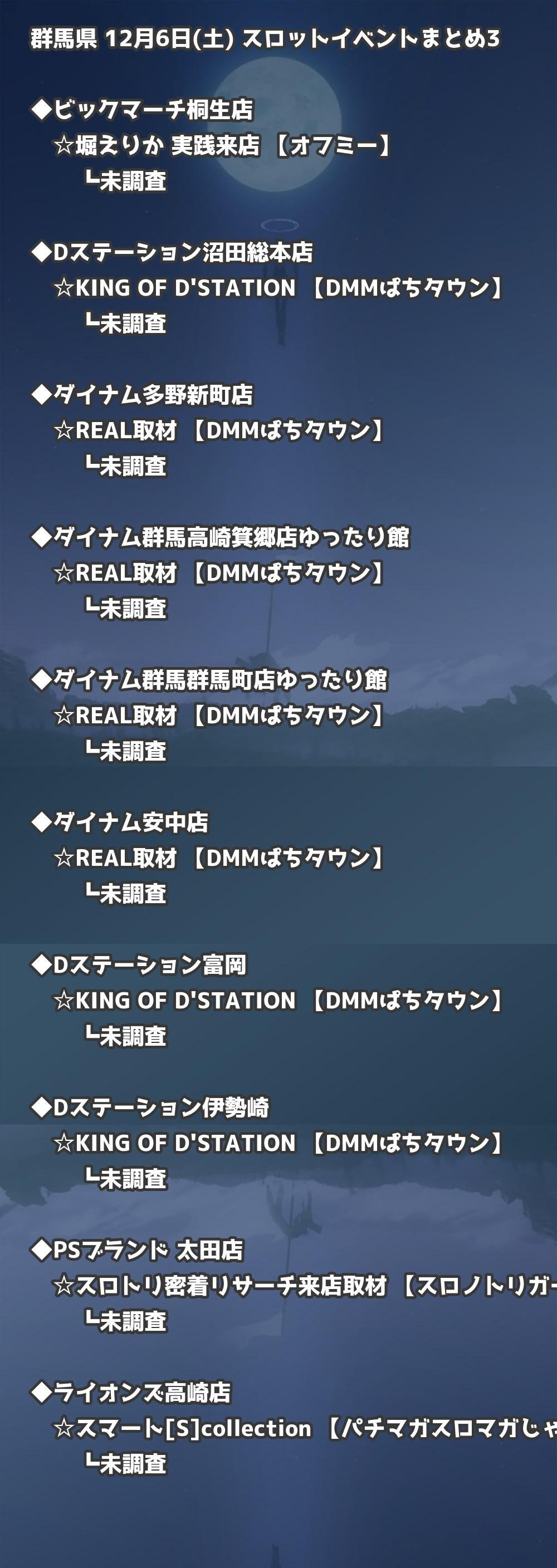【群馬県】12月6日(土) パチンコホールイベント取材まとめ記事です。