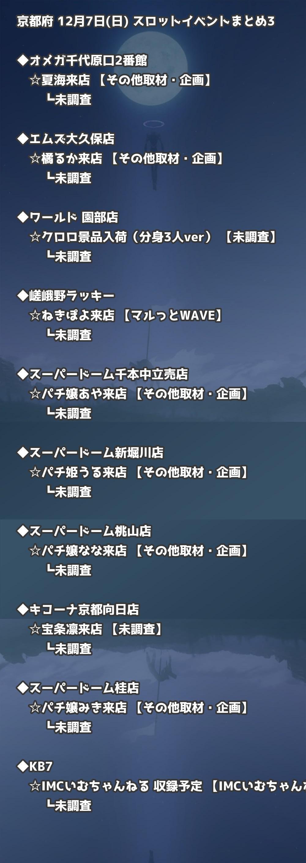 【京都府】12月7日(日) パチンコホールイベント取材まとめ記事です。