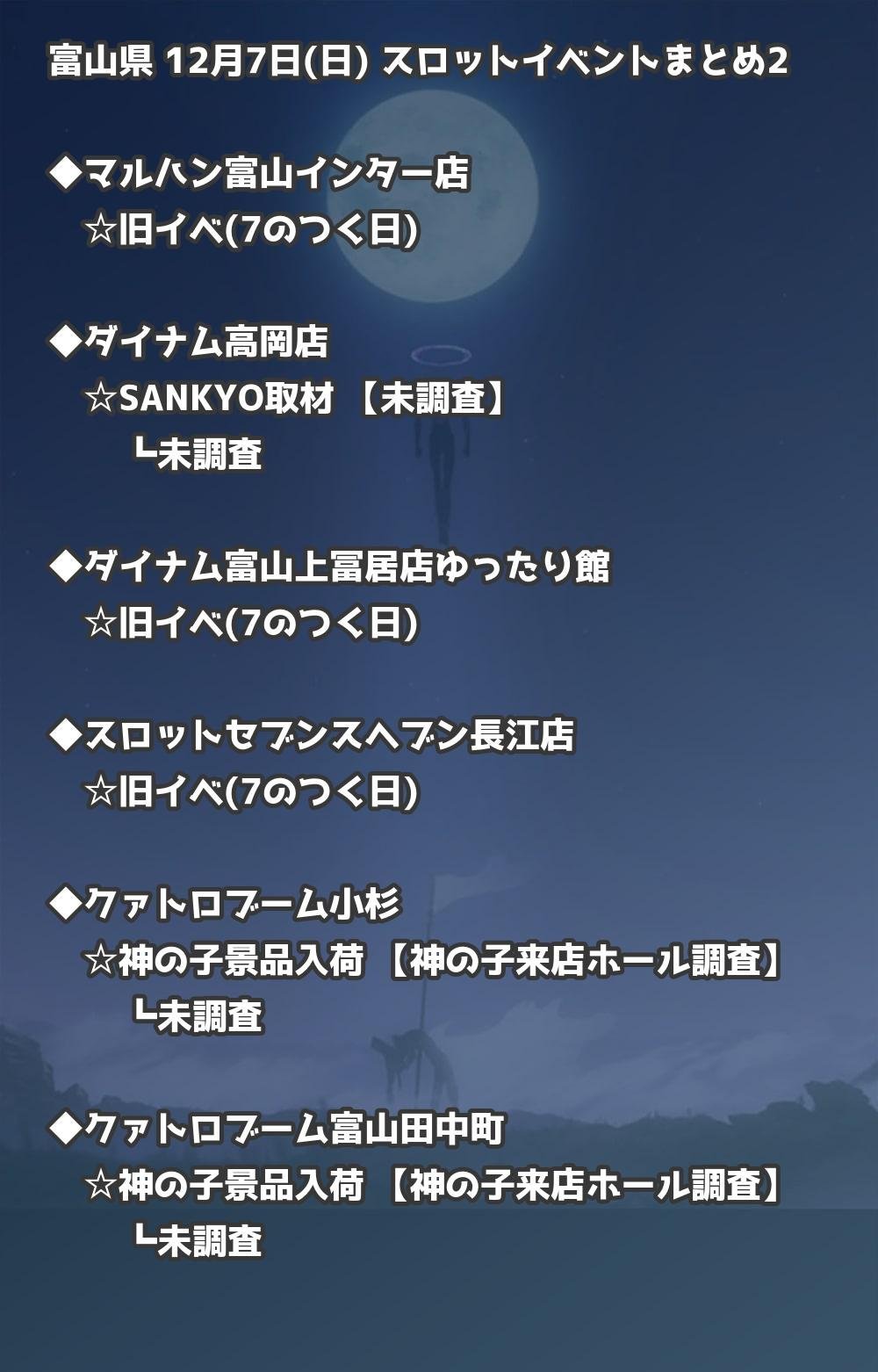 【富山県】12月7日(日) パチンコホールイベント取材まとめ記事です。